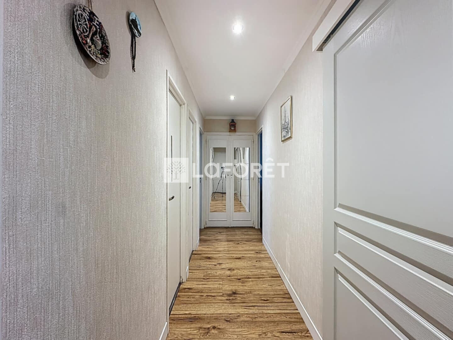 Il se compose d'un couloir, d'une cuisine aménagée et équipée, d'un salon ouvert sur une salle à manger, de deux chambres, d'une salle de douche et d'un WC séparé.