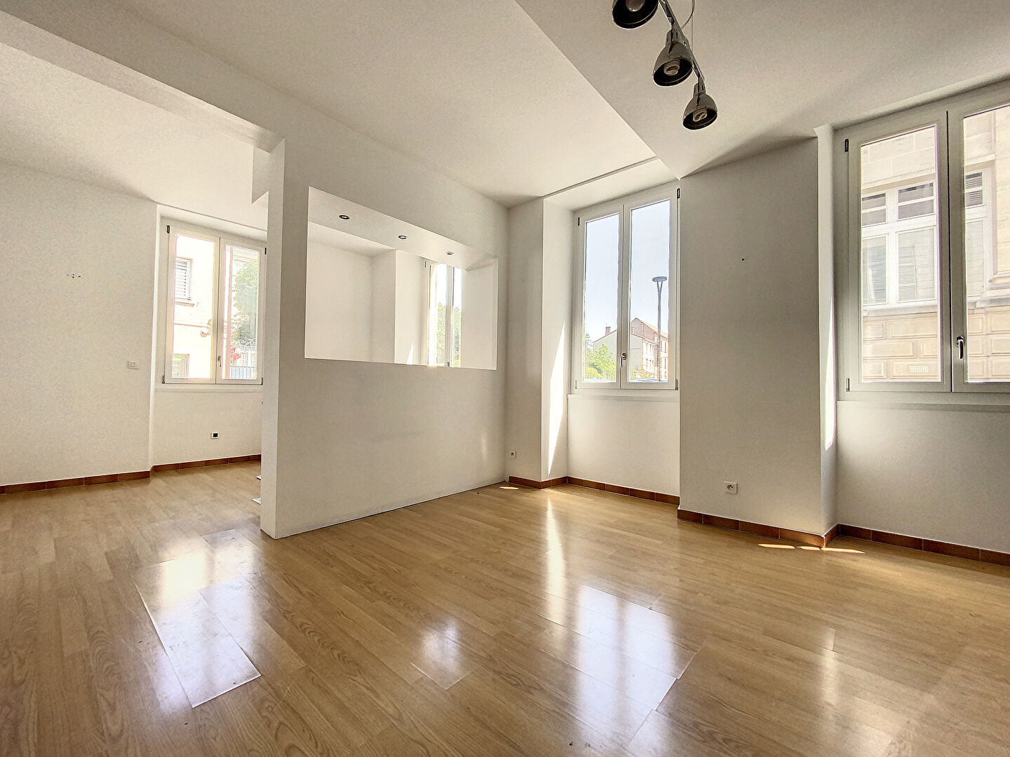 à louer un lumineux appartement de type 2 offrant une entrée avec placards, une cuisine équipée ouverte sur séjour, une chambre avec placard, une salle de douches, des WC indépendants.