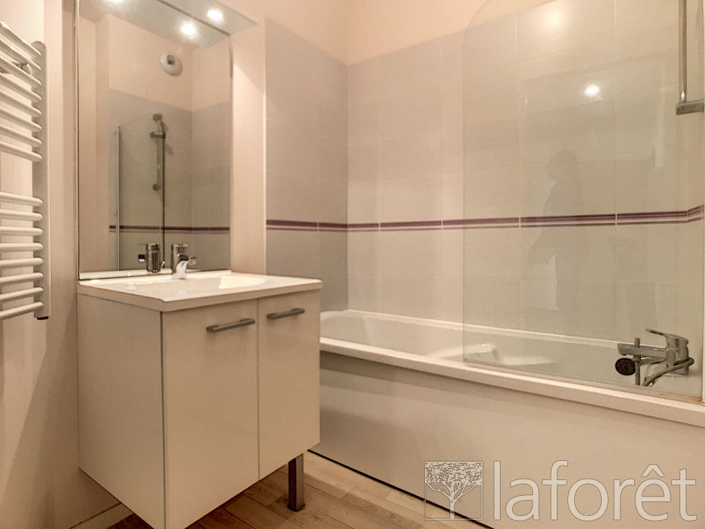 Découvrez le charme de ce type 2 comprenant une entrée avec placard, une salle de bains, une chambre avec placard, volets roulants électriques, WC séparés, une cuisine équipée d'éléments bas, d'une hotte, d'une plaque induction, d'un four, d'un réfrigérateur avec congélateur.
