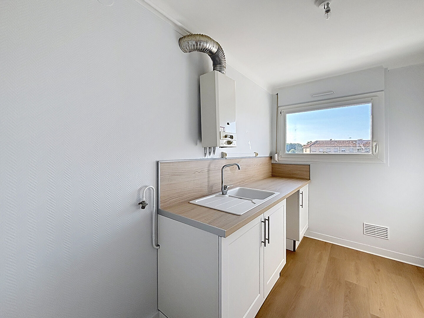 à louer, un bel appartement composé d'un séjour, d'une cuisine avec cellier, d'un dégagement , de 2 chambres avec placards, d'une salle de bains et des wc.