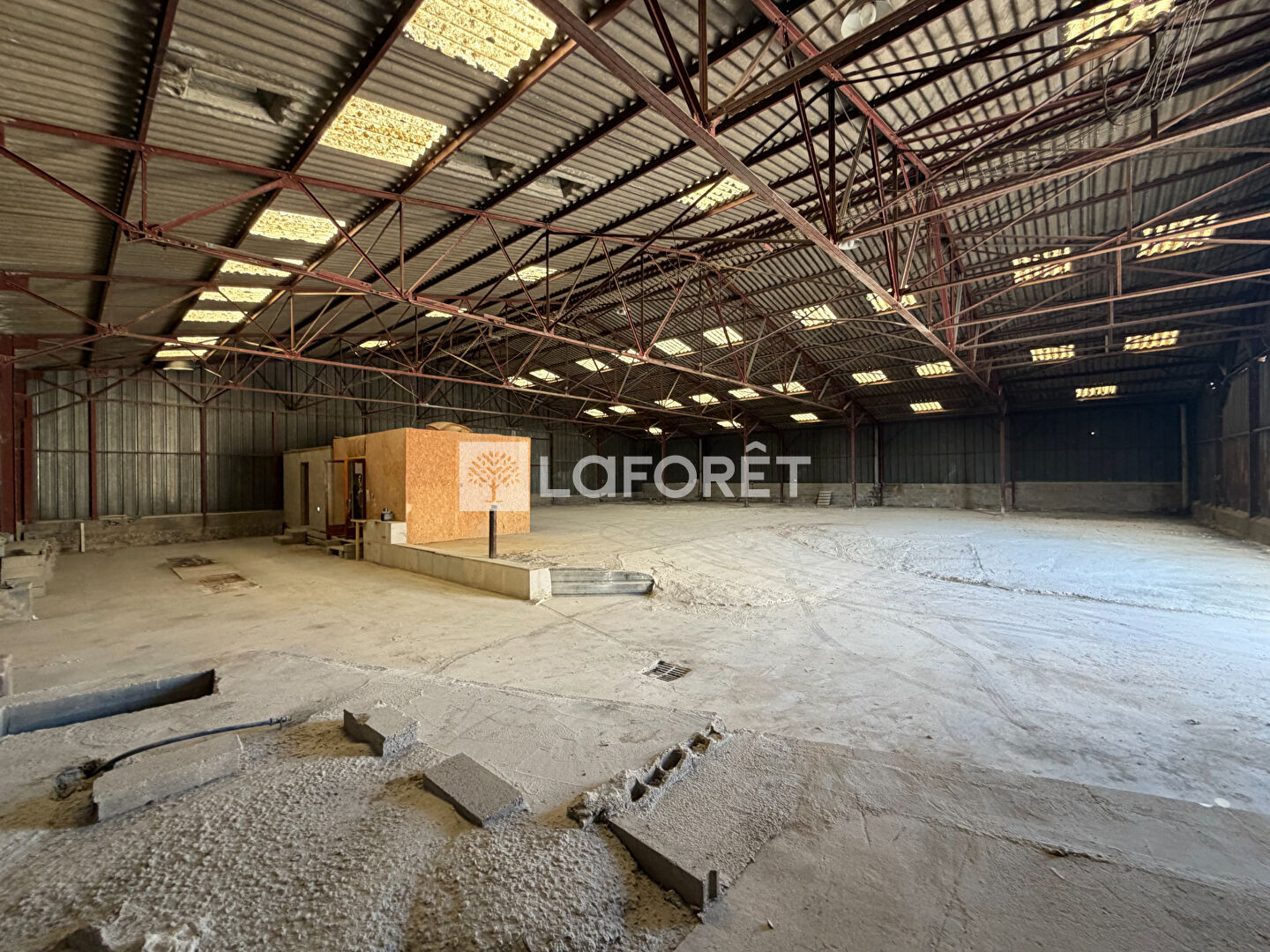 A louer, hangar d'environ 667 m2 offrant vaste surface de stockage, possibilité de réhabiliter deux bureaux avec point d'eau ou cuisine et un WC.