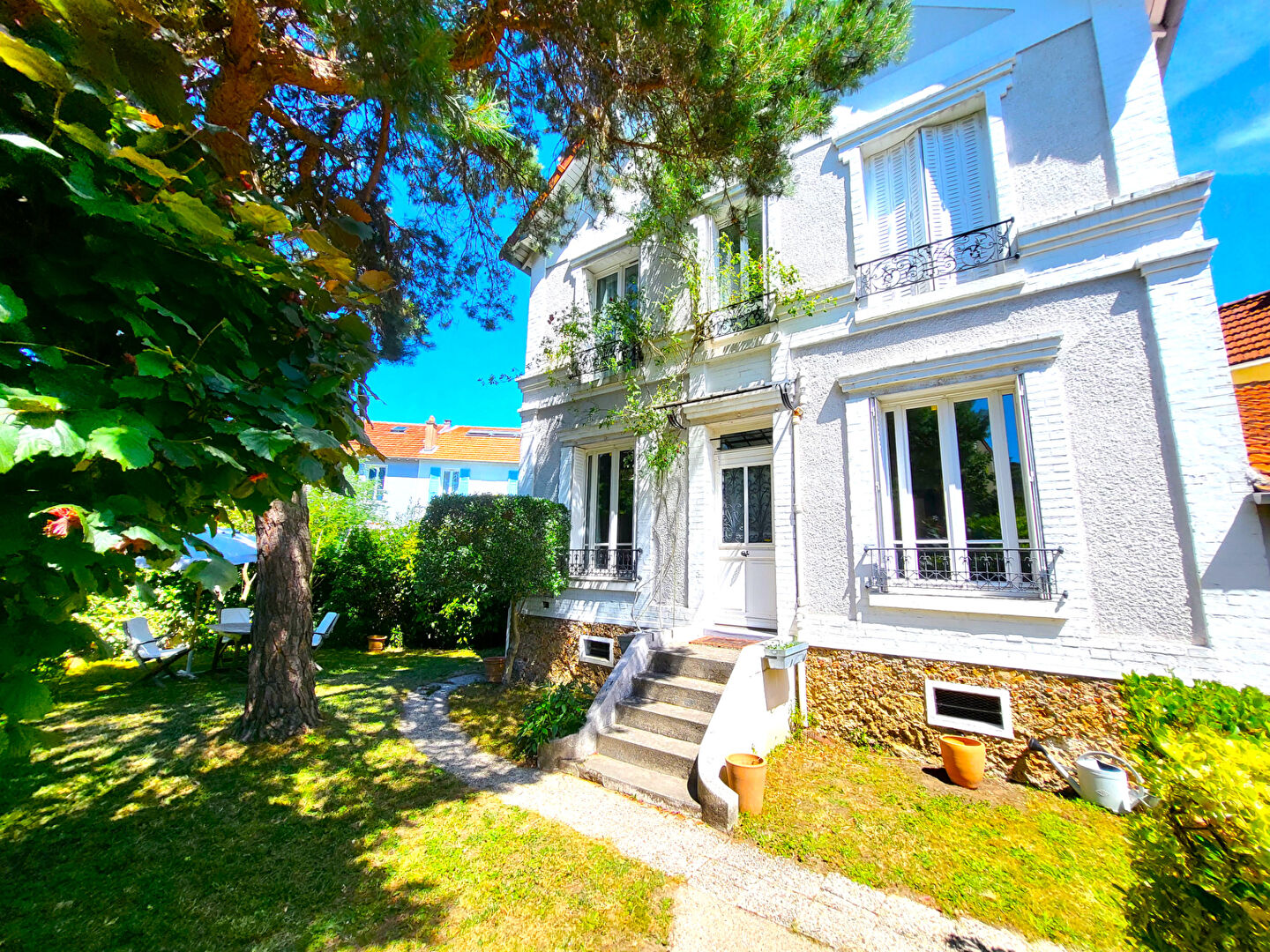 Située à 2 pas du centre-ville, de la gare (Ligne L - La Défense / St Lazare), des commerces et des écoles, cette maison de charme de 133m² carrez (256m² au sol) est lumineuse et au calme.
