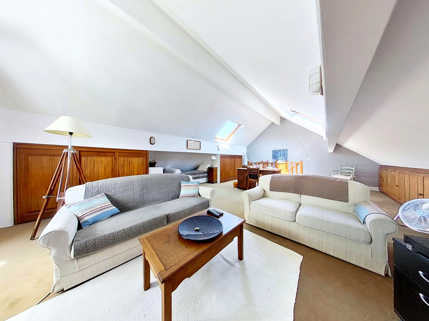 Au 2ème étage : une salle de 56m² au sol, lumineuse. Elle peut être utilisée en 4ème chambre, en salle de jeux / cinéma.
