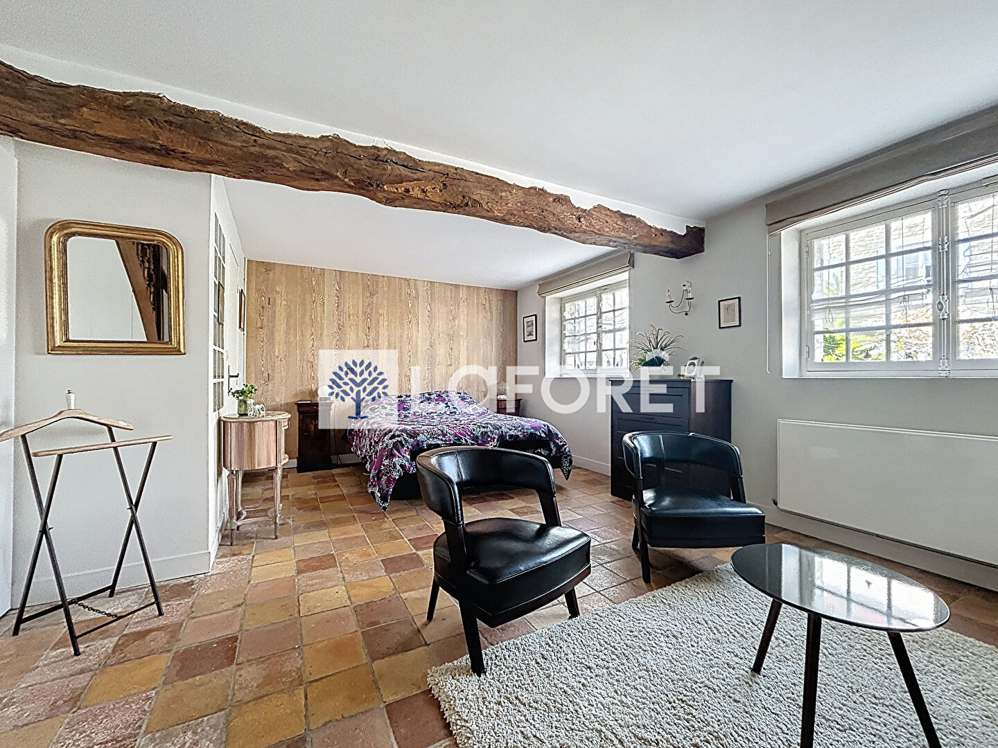 Au même niveau, une suite parentale dispose de sa salle de bains privative et d'un dressing. S'ajoutent à cela une salle à manger baignée de lumière, une salle de bains contemporaine, ainsi qu'une chambre au charme singulier avec son oeil-de-boeuf. Une seconde suite, indépendante et chaleureuse, offre sa propre cheminée, une salle de douche et un dressing.