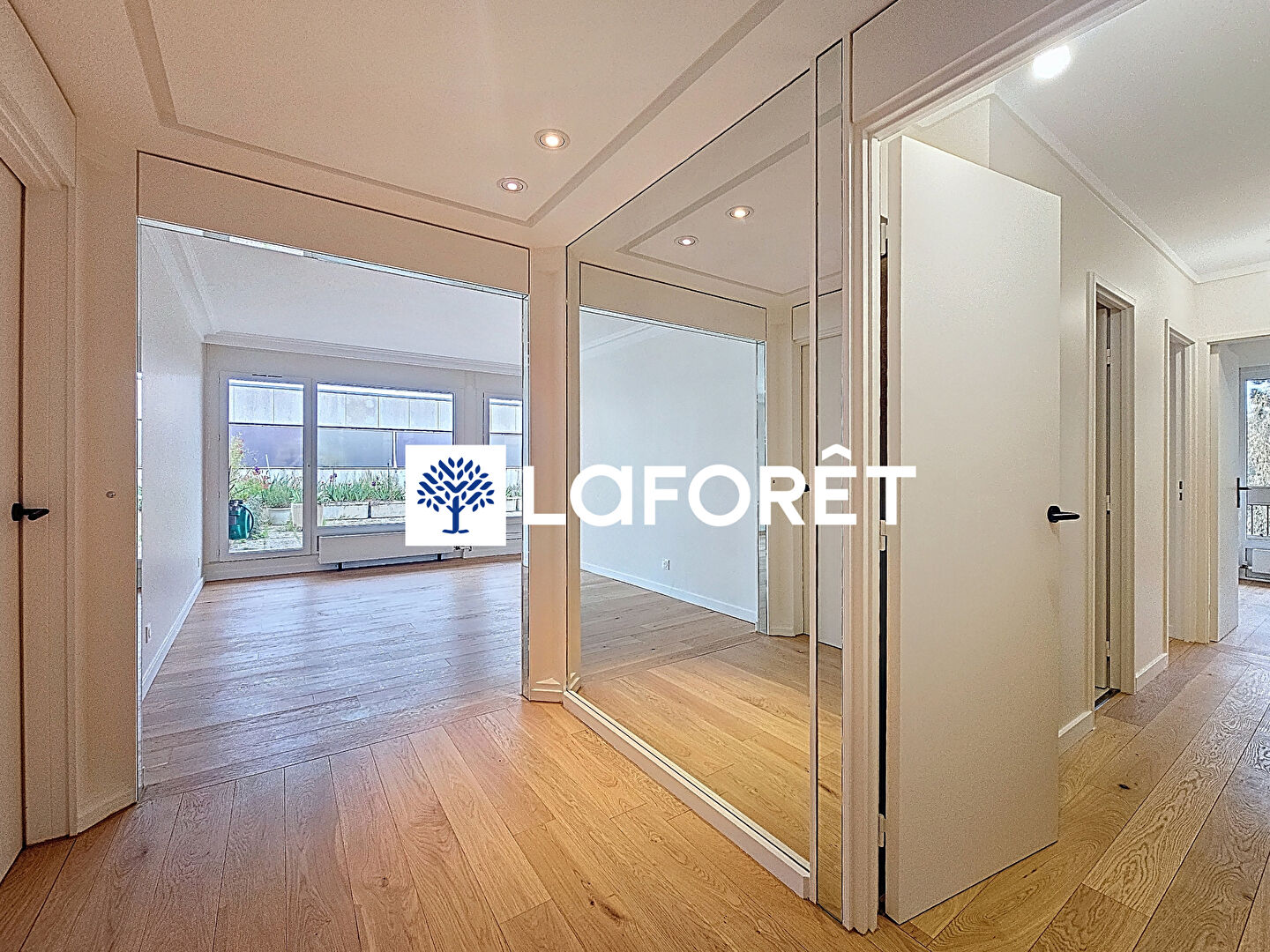 Entièrement rénové du sol au plafond, ce bien d'une surface privative de 110,55 m² se compose d'une entrée avec rangements, d'un vaste double séjour de 46 m² baigné de lumière grâce à de larges baies vitrées ouvrant sur une superbe terrasse + balcon d'environ 70 m², d'une cuisine indépendante aménagée avec accès sur la terrasse.