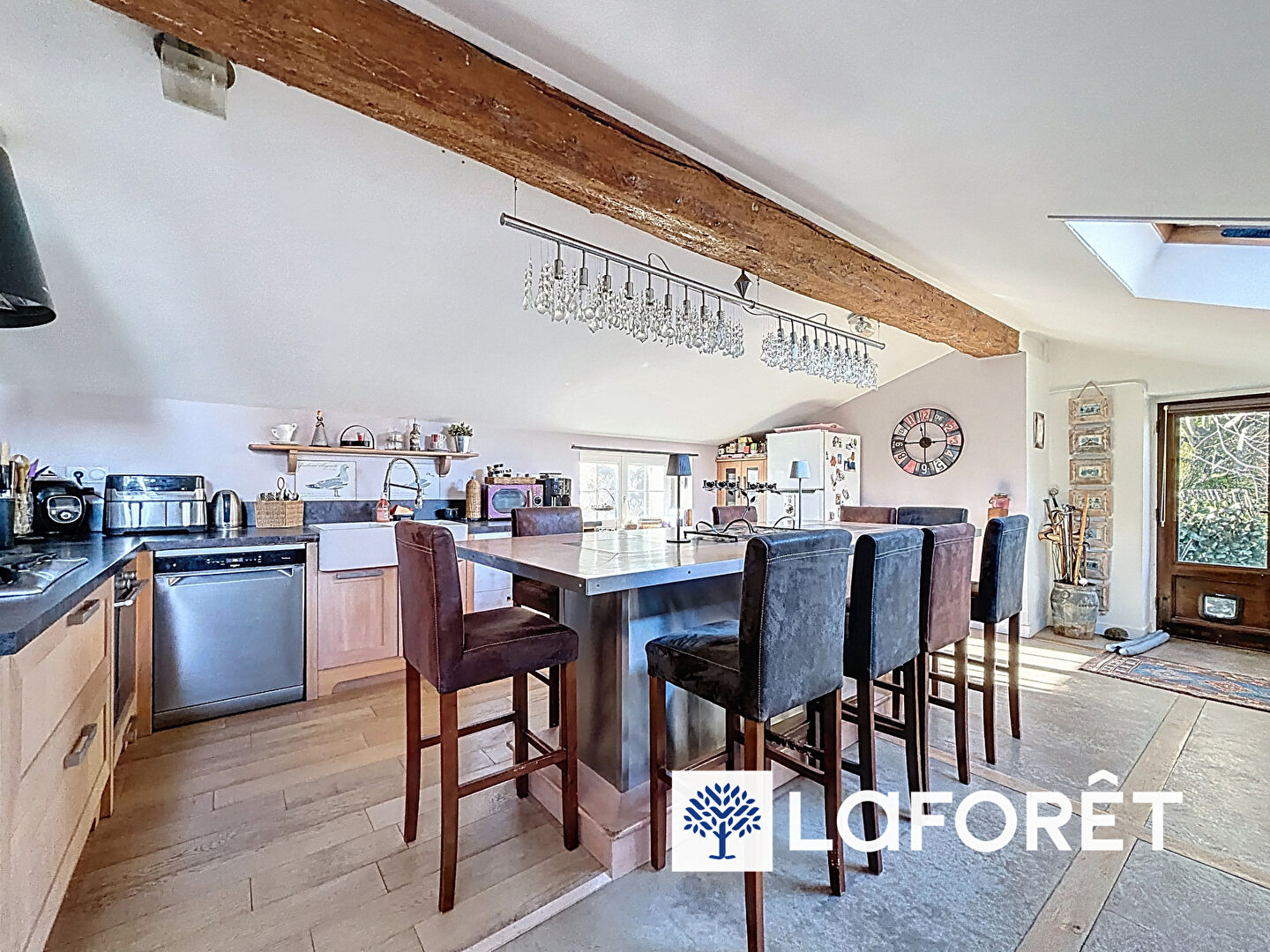 La cuisine, véritable pièce de partage, est pensée pour les moments en famille ou entre amis : sa table centrale invite à la convivialité, et un cellier attenant offre un espace de rangement pratique au quotidien.