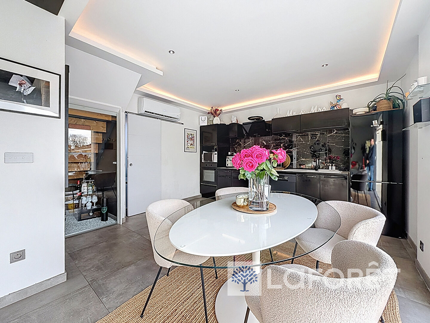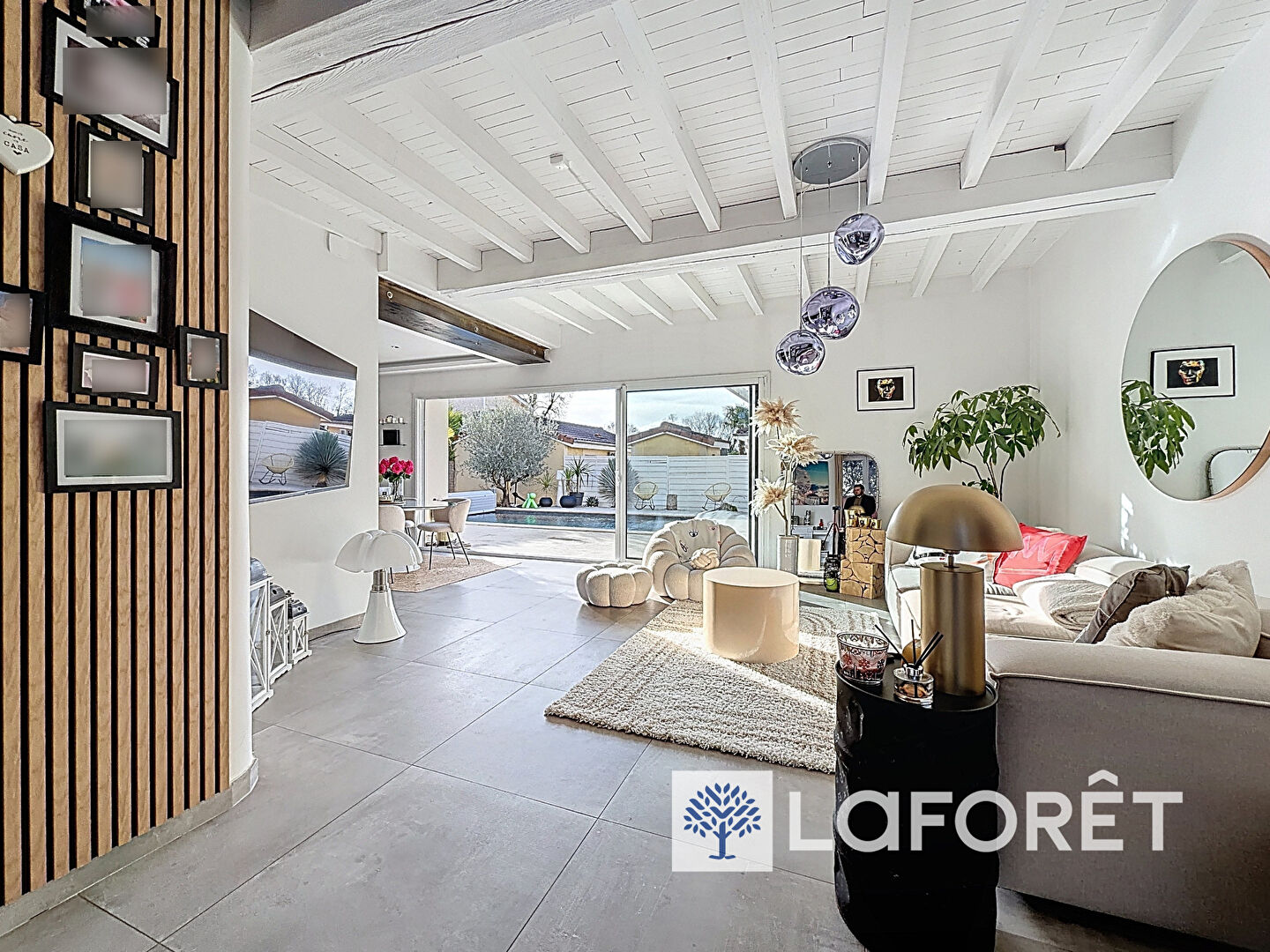 Dès l'entrée, vous découvrirez une pièce de vie lumineuse et élégante, où salon, séjour et cuisine entièrement équipée s'organisent dans un espace ouvert, pensé pour la convivialité et le confort du quotidien. L'ensemble s'ouvre naturellement sur une grande terrasse en travertin, véritable prolongement de la maison.