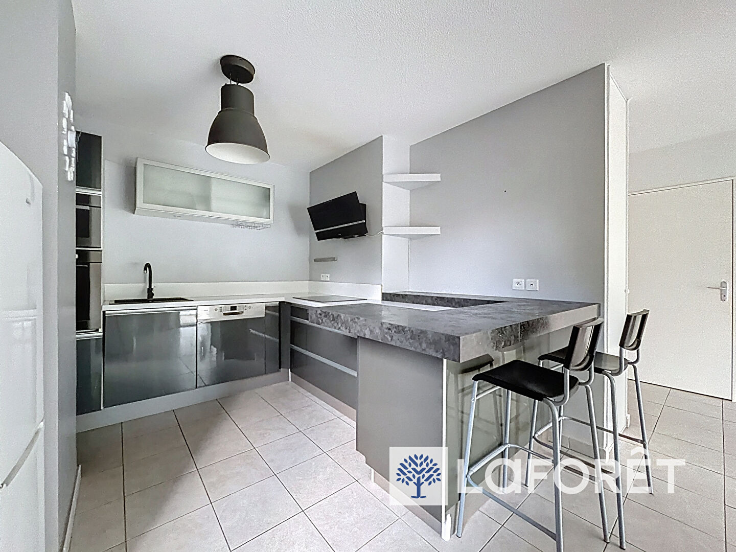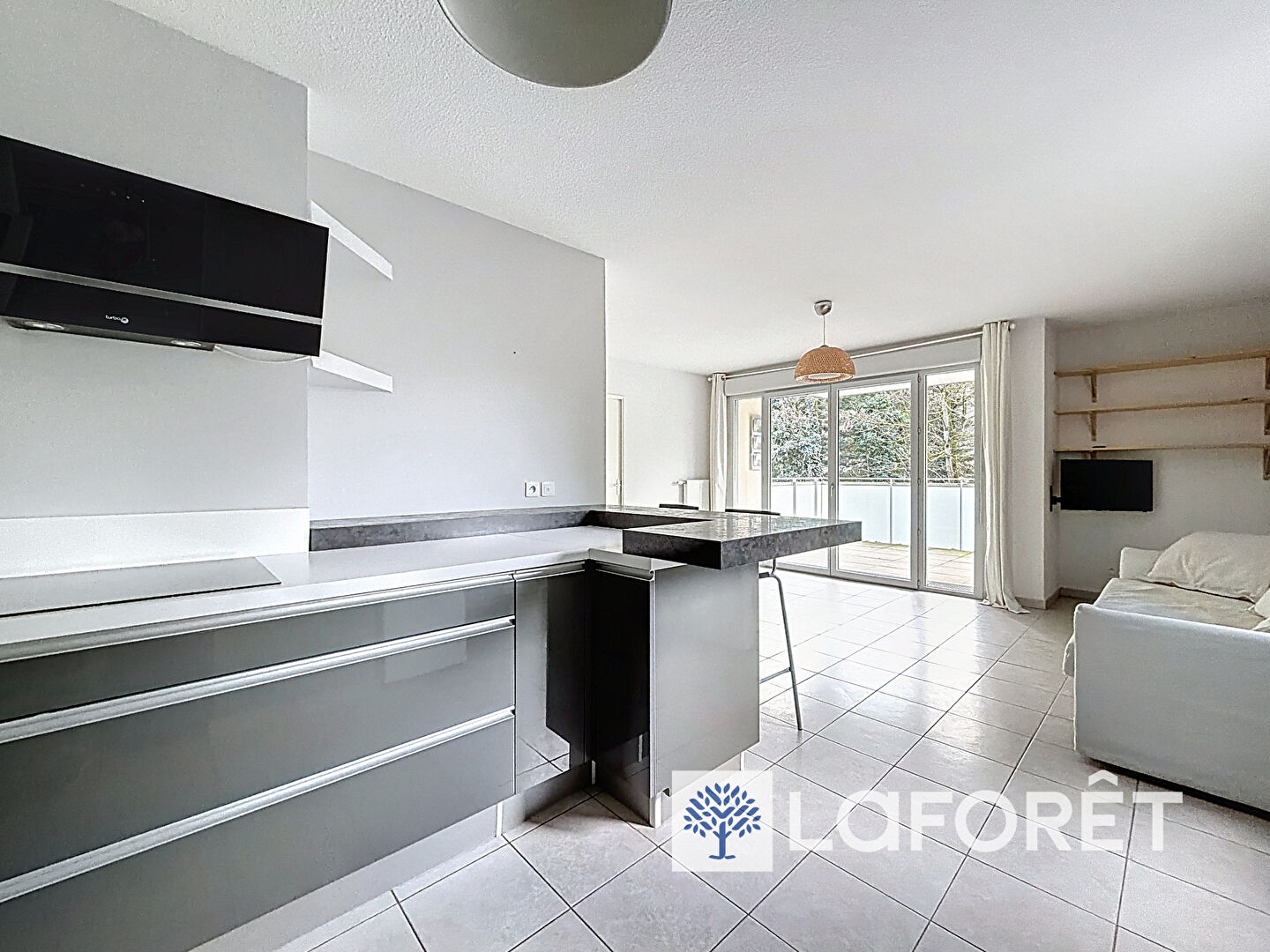 L'entrée avec un grand placard, s'ouvre sur une pièce de vie spacieuse de 28 m², avec cuisine ouverte sur le séjour, offrant un espace convivial et fonctionnel. Cet espace donne un accès direct à un balcon de 8 m², parfait pour profiter des beaux jours.