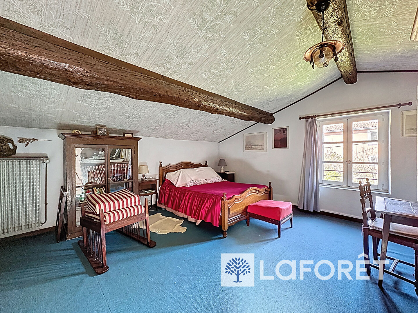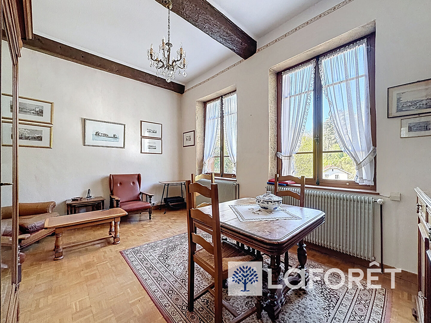 Derrière sa façade pleine de charme, le temps semble suspendu. Les pierres apparentes, les poutres anciennes, les hauteurs sous plafond et les volumes généreux témoignent du cachet unique de cette demeure familiale.