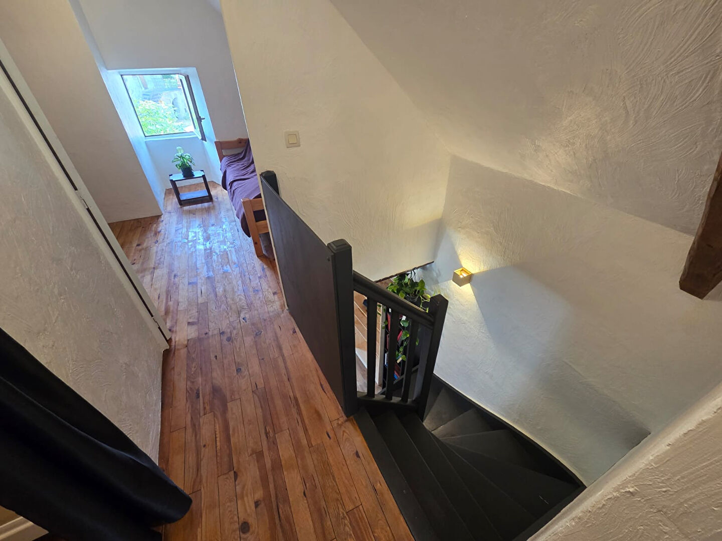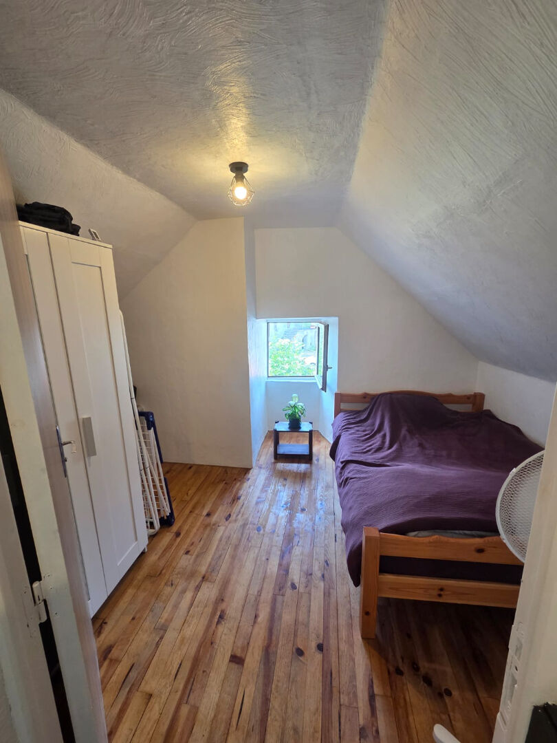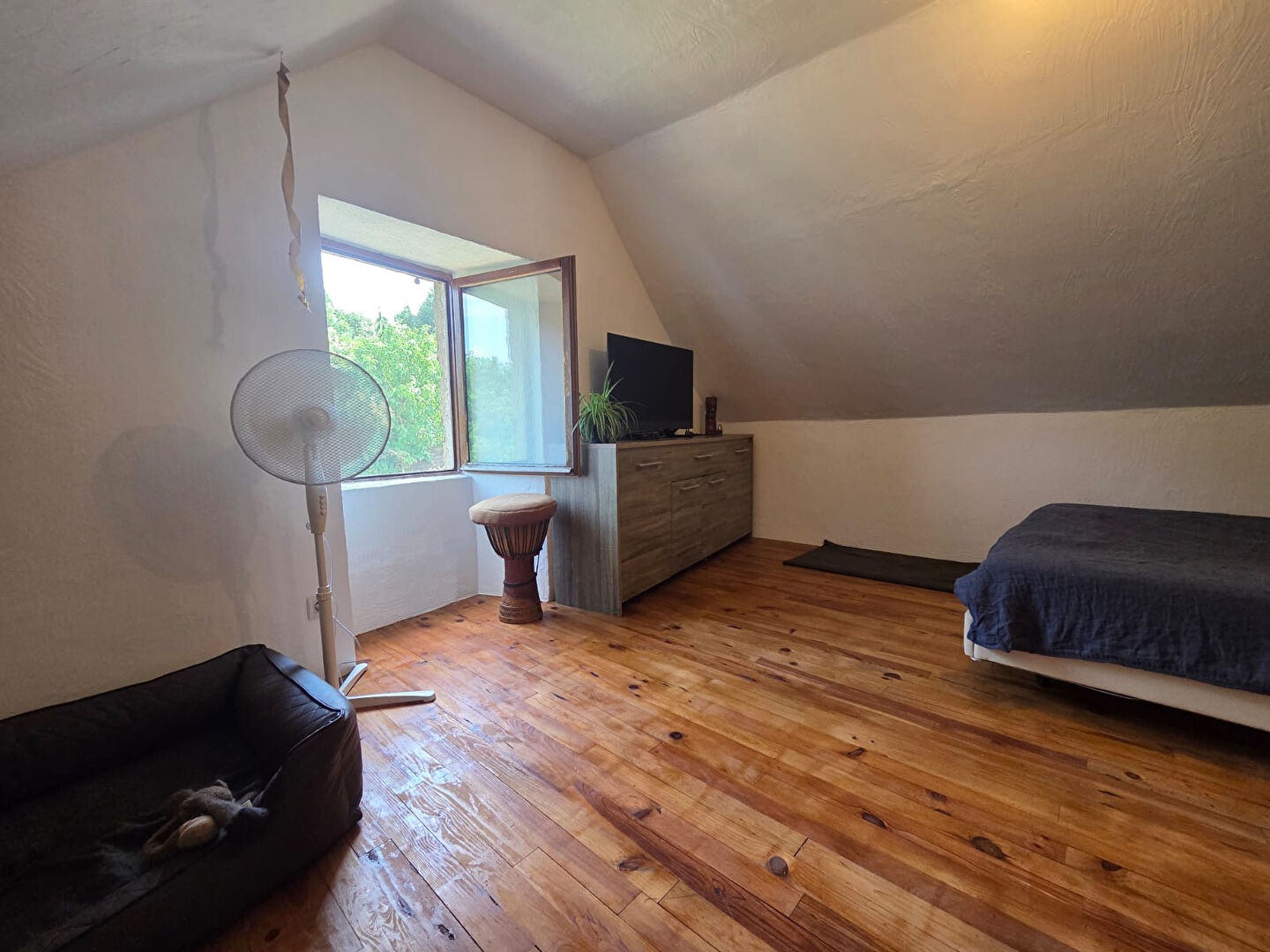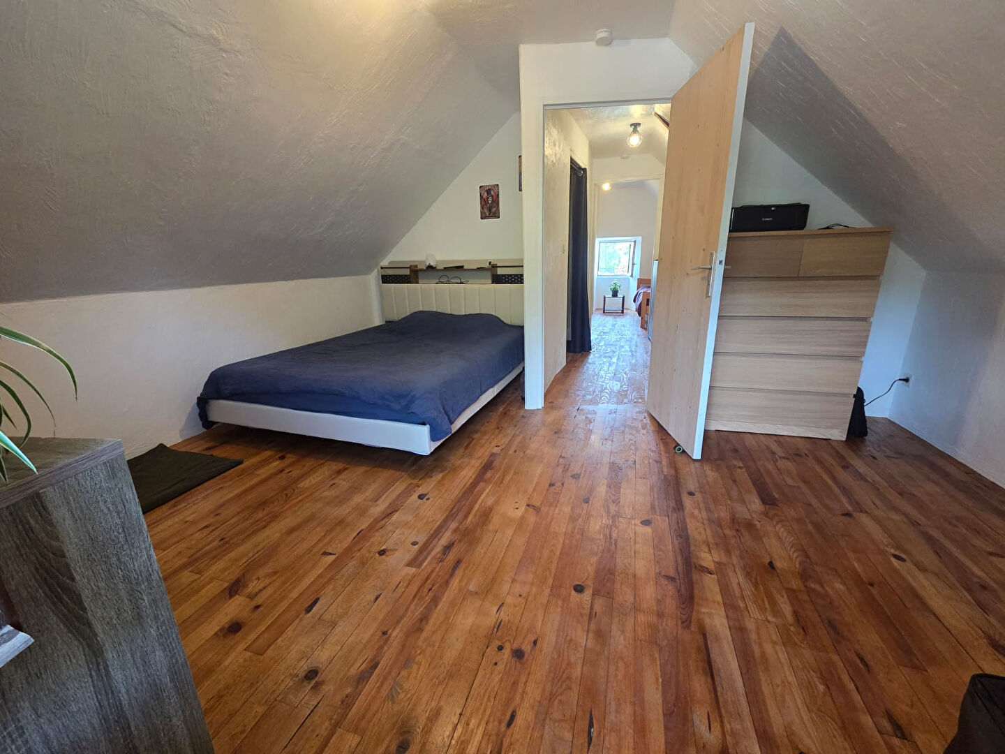 Au 1er étage : deux chambres de 11 et 16m2, salle d'eau et WC.