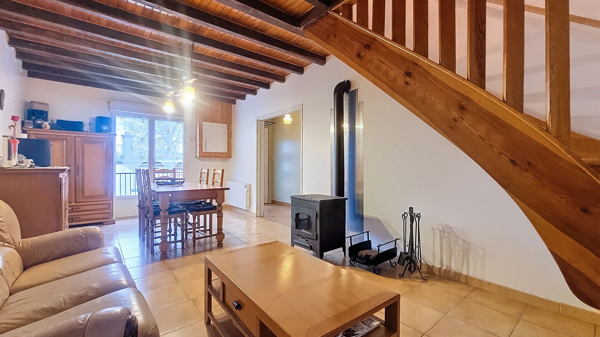 Fenêtres en PVC double vitrage, chauffage poêle à bois et radiateurs électriques.