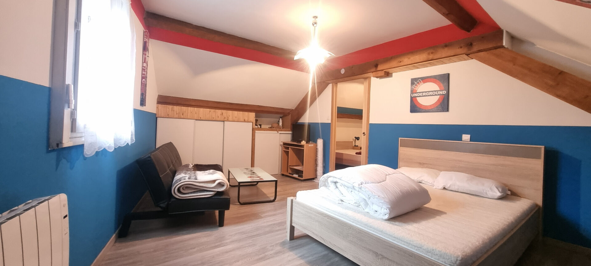 A l'étage deux autres chambres de 18m2 et 15m2 environ et coin bureau.
