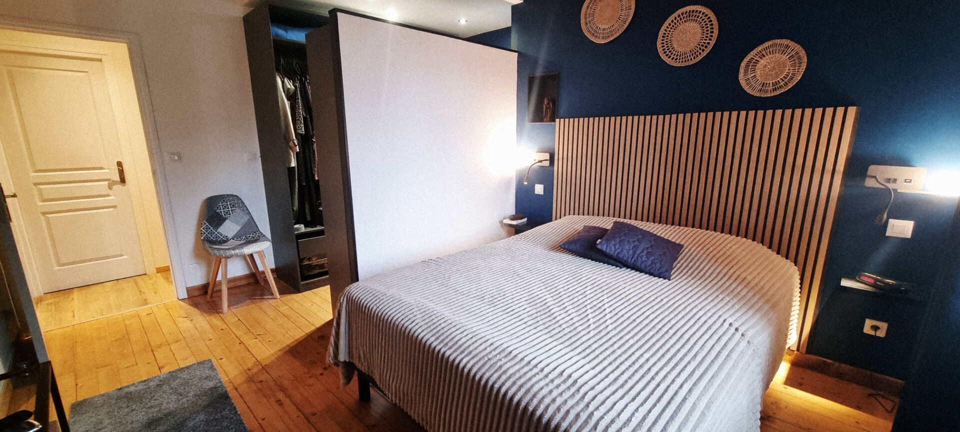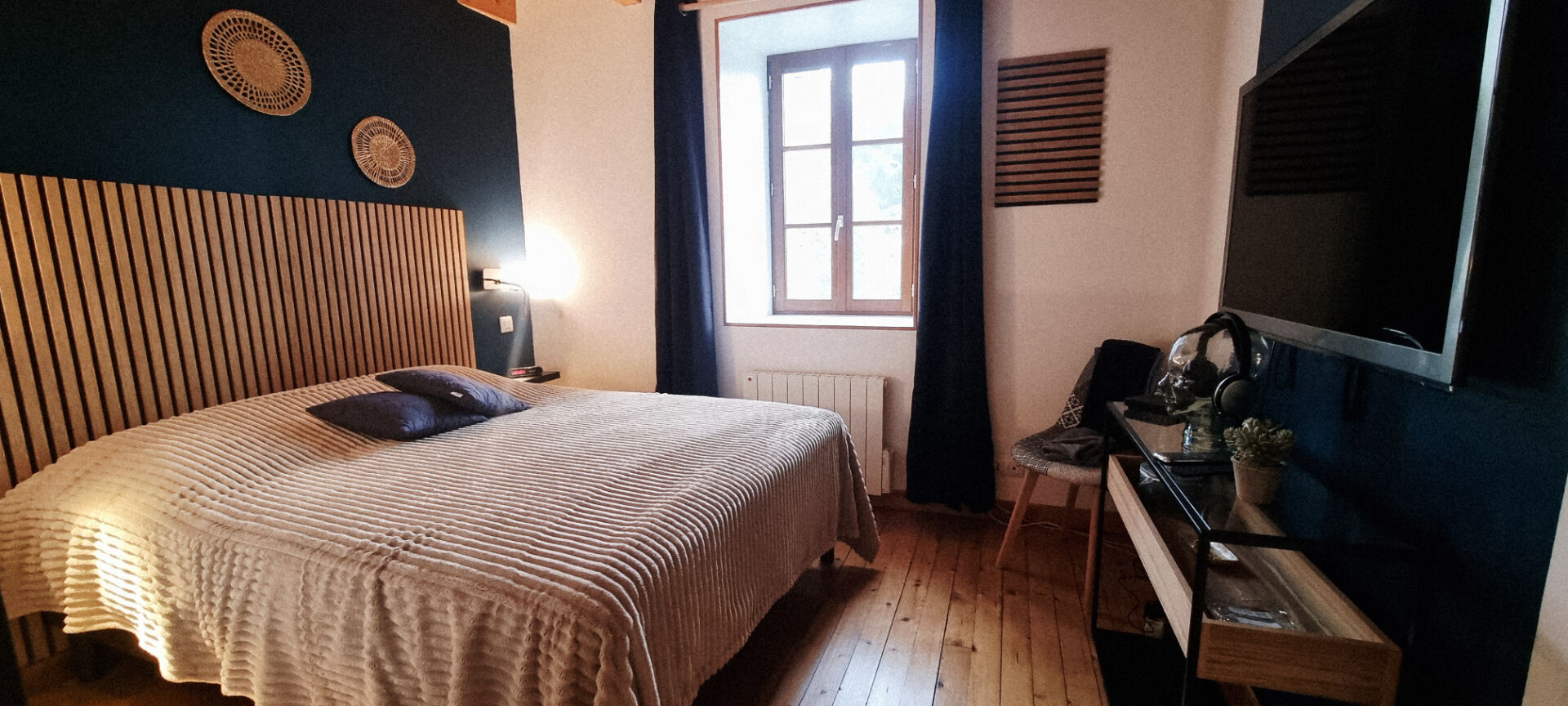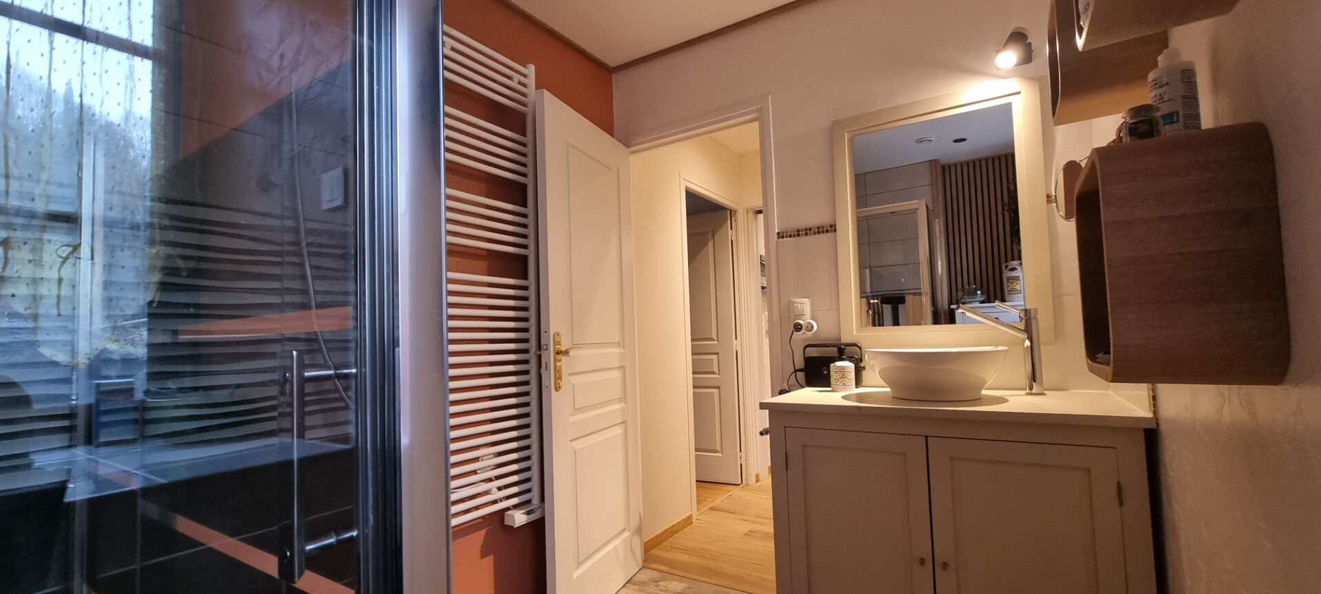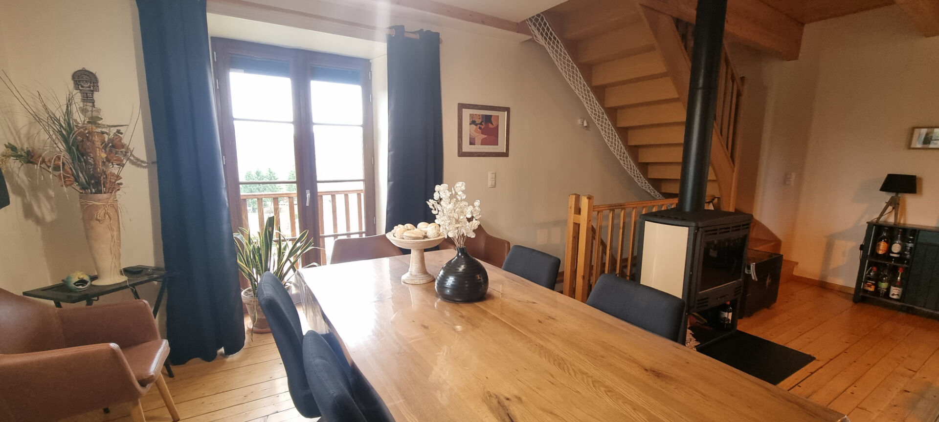 Fenêtre double vitrage bois, chauffage poêle à bois et radiateurs électriques d'appoint.