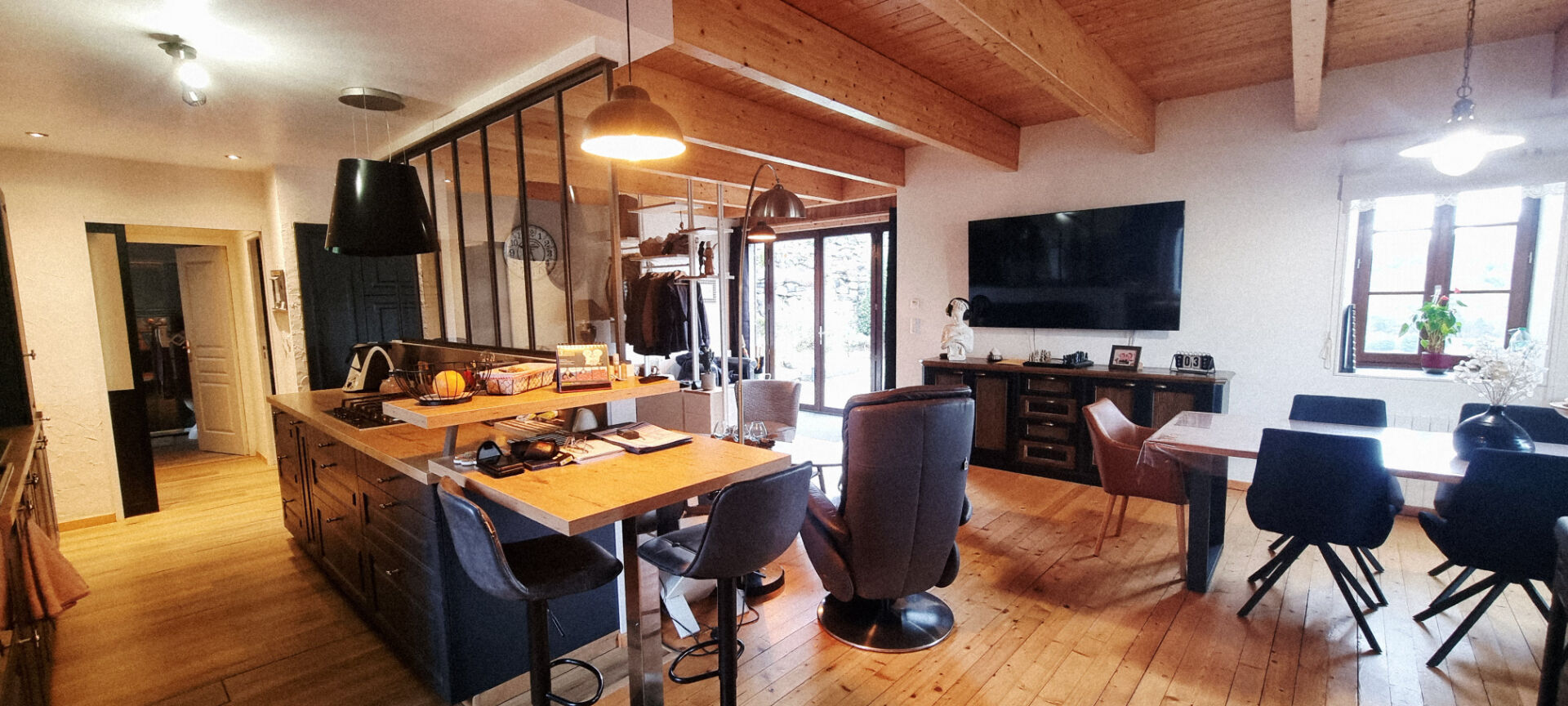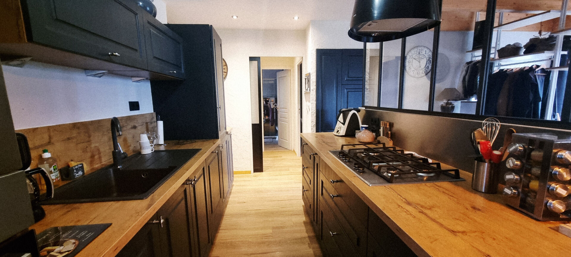 Au Rez-de-jardin : Une grande pièce de vie lumineuse de 55m2 environ avec cuisine ouverte toute équipée, une chambre parentale avec dressing, une salle d'eau et un WC séparé.