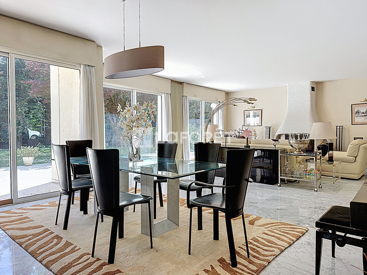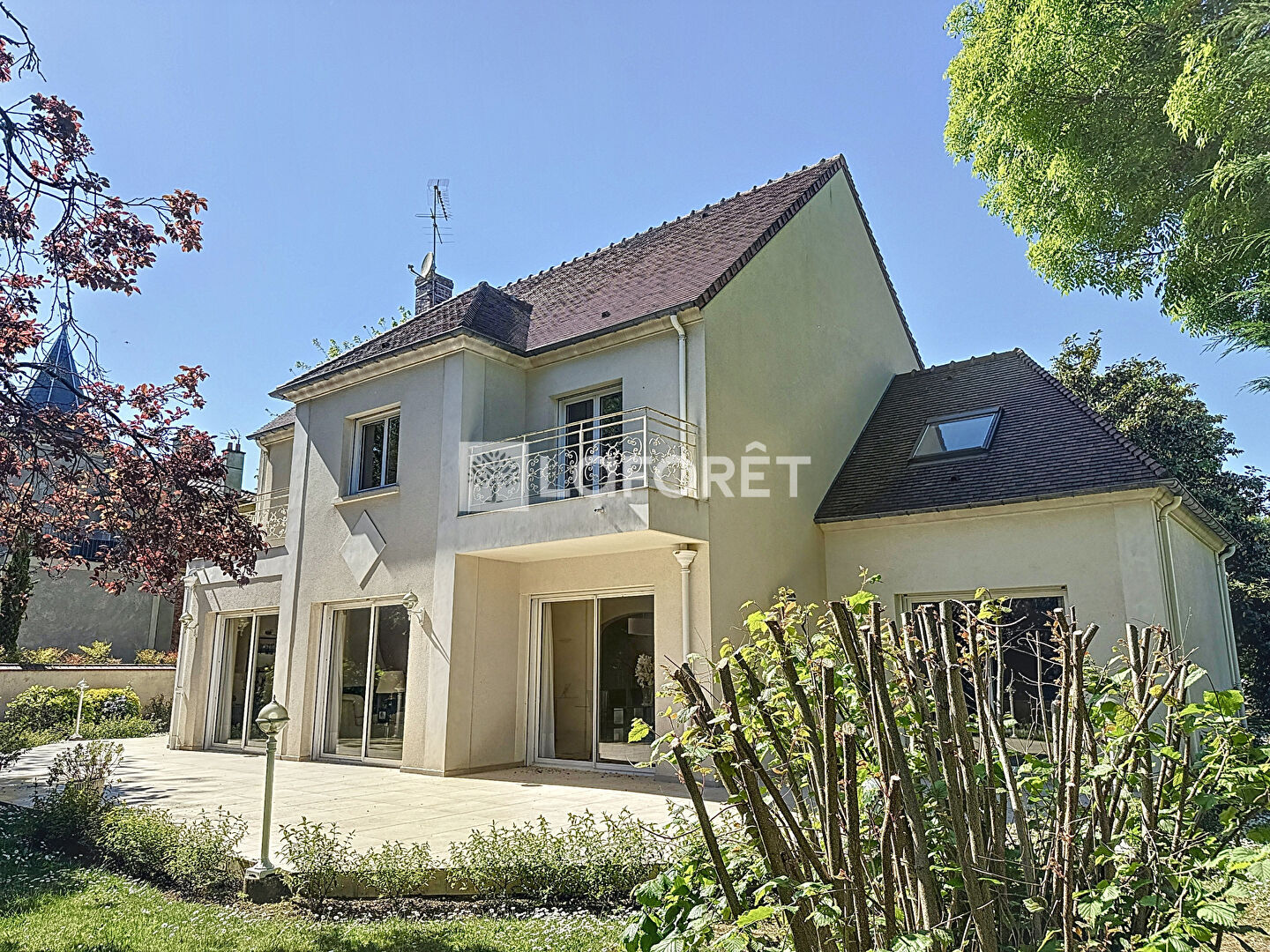 Une magnifique allée vous conduit dans cette demeure de 300 m² composée, au RDC, d'un vaste séjour de 57 m² donnant sur la terrasse orientée plein sud, d'une cuisine indépendante entièrement équipée, de deux bureaux/chambres, d'un studio indépendant avec salle d'eau/sanitaires.
