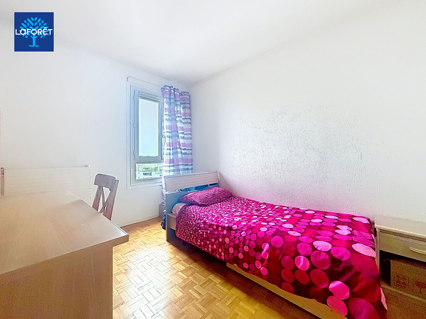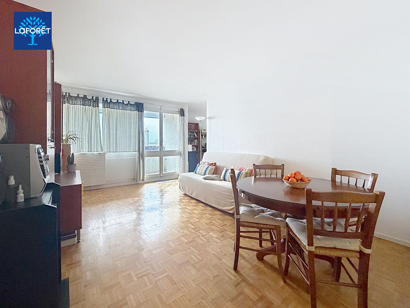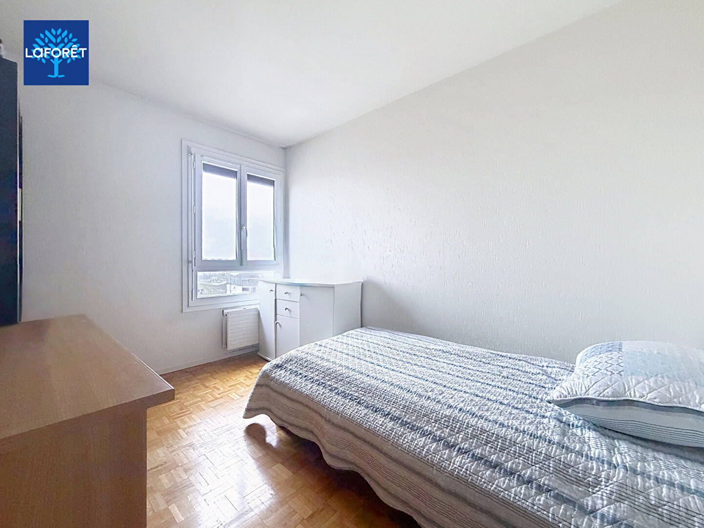 Il se compose de 5 pièces, dont 3 chambres, ainsi qu'un double séjour lumineux en L offrant la possibilité d'aménager une 4e chambre. Le séjour s'ouvre sur une loggia exposée Ouest avec une vue dégagée.