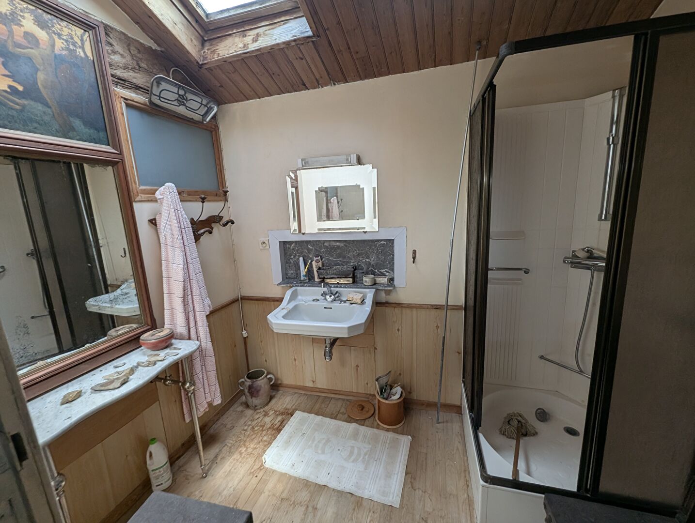 A l'étage, 1WC, une salle d'eau, 1 chambres, 2 grandes pièces et deux petites chambres en enfilades dont une avec un petit point d'eau.