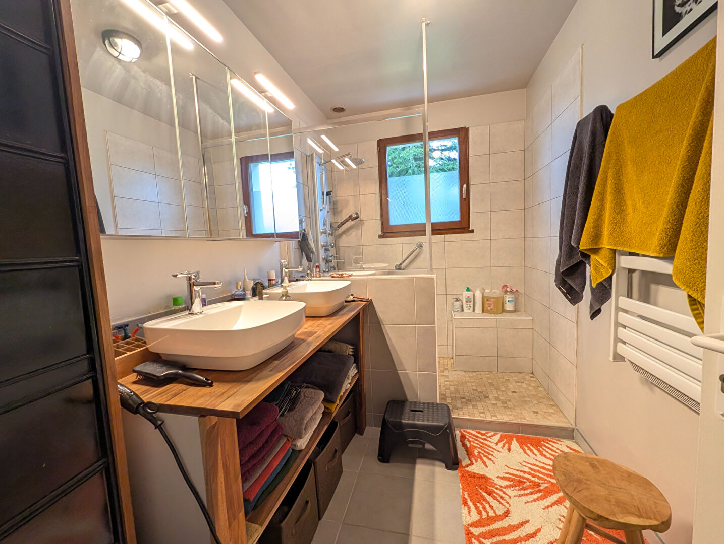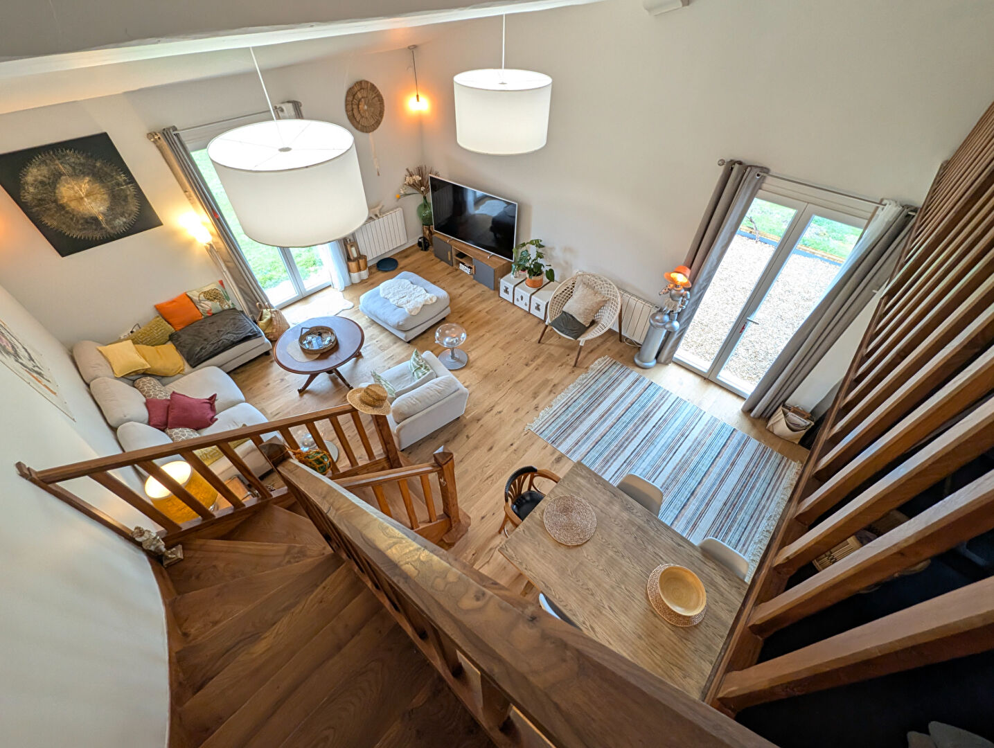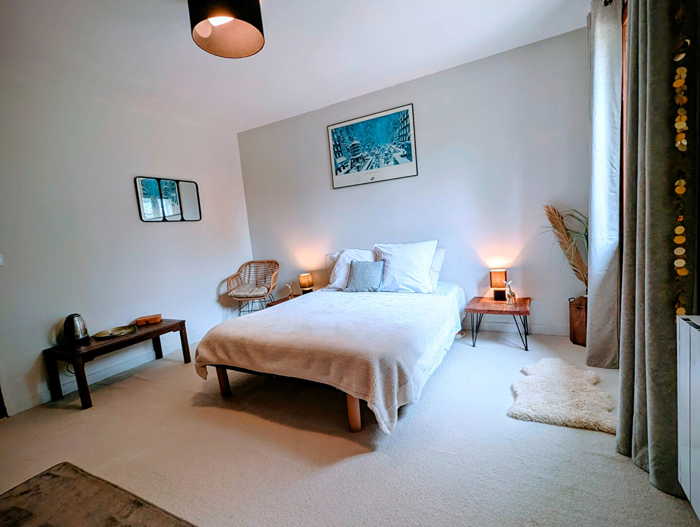 A l'étage la mezzanine vous permettra d'accéder à une très belle chambre avec sa propre salle d'eau et ses WC séparés. Un vrai espace d'accueil pour les amis, la famille ou tout simplement une suite parentale.