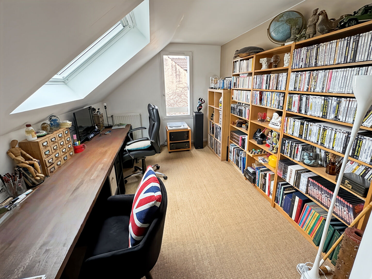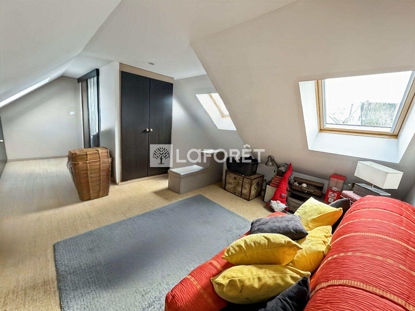Le deuxième étage accueille une spacieuse chambre mansardée avec rangements, parfaite pour créer un espace adolescent, une salle de jeux, un bureau ou une chambre d'amis.