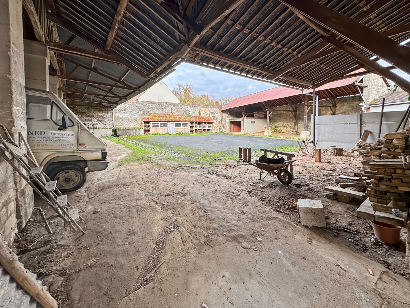 L'ensemble comprend de multiples dépendances, hangars, granges, zones de stockage, remises, caves voûtées et greniers, offrant une surface aménageable d'environ 510 m², et 388 m² de hangars ouverts, pour une surface bâtie totale de 1 138 m².