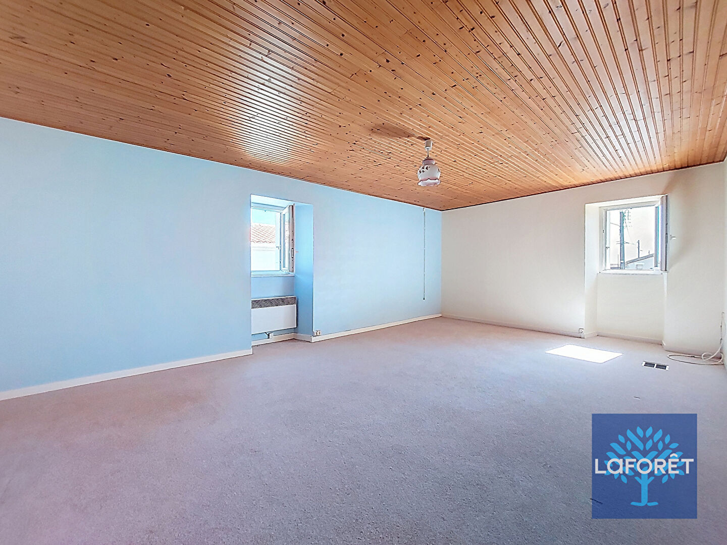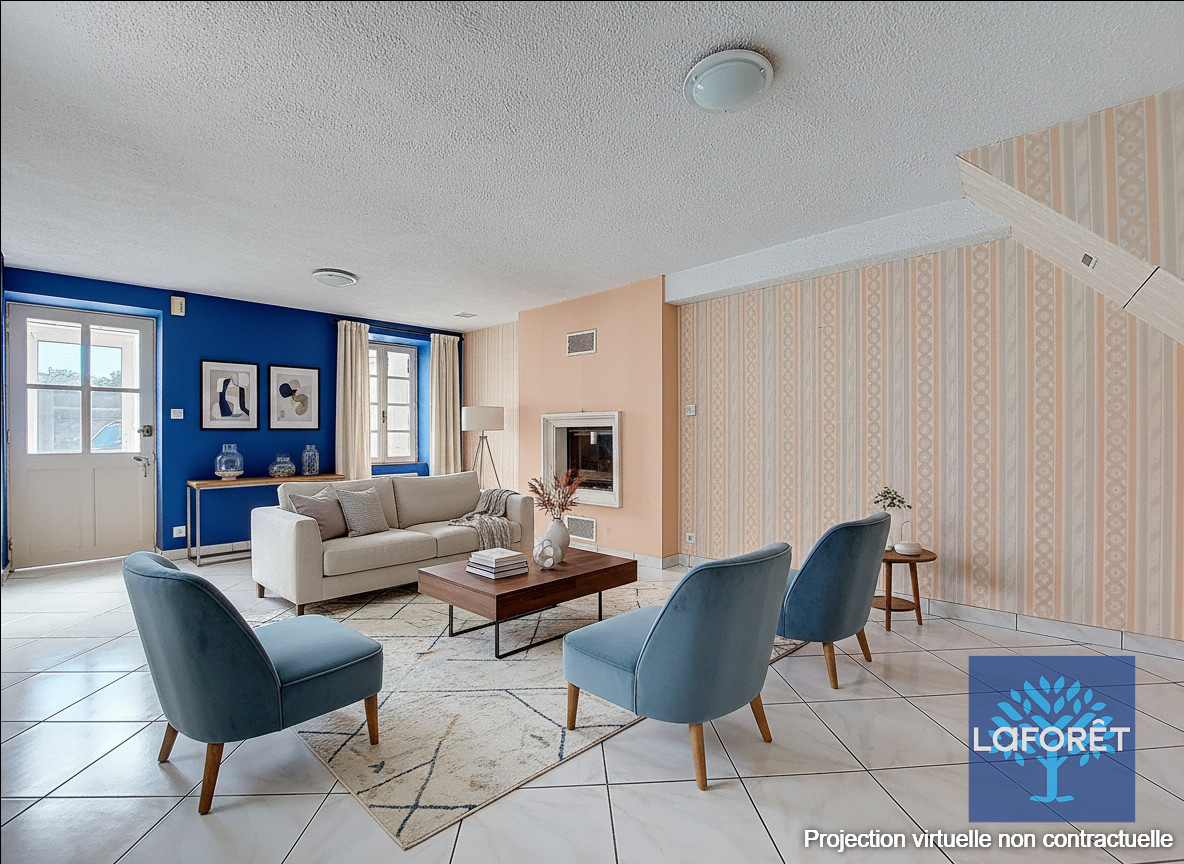 Une spacieuse pièce de vie lumineuse avec insert, parfaite pour vos soirées cocooning