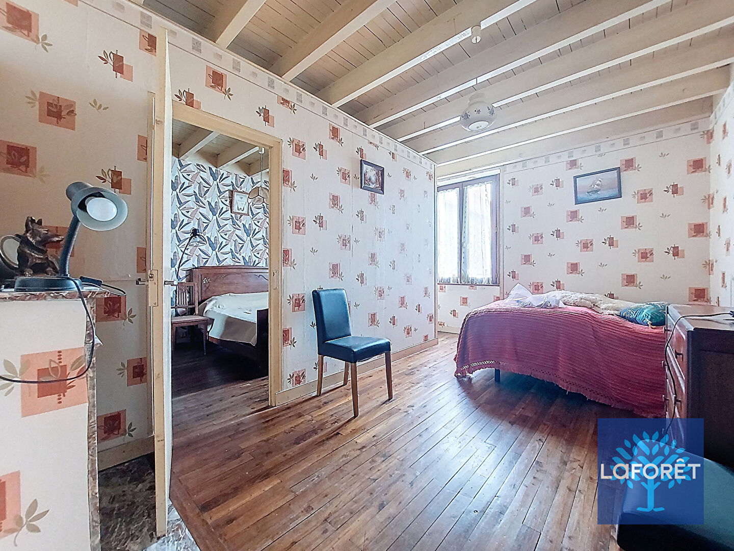 Charme de l'ancien avec parquets massifs, cheminées, volumes.