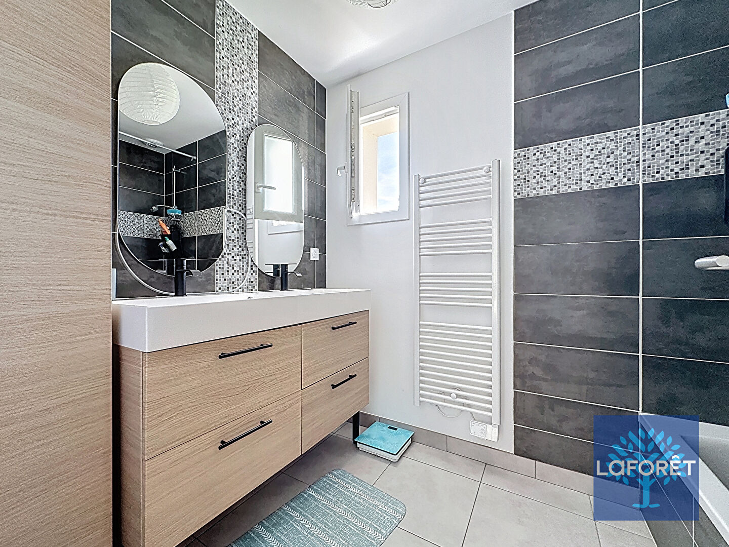 D'une surface habitable de 84 m², elle est implantée sur un terrain clos de 466 m² et offre des prestations modernes et soignées. L'entrée s'ouvre sur une spacieuse pièce de vie lumineuse, avec salon et cuisine ouverte, parfaite pour accueillir famille et amis dans un espace convivial.
