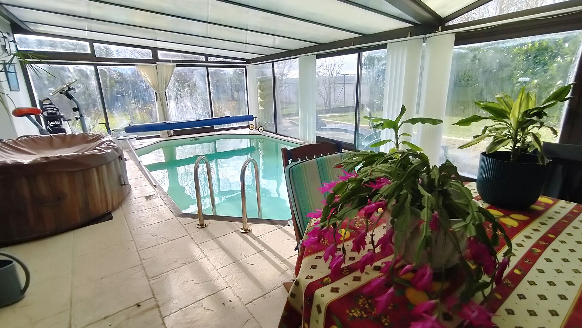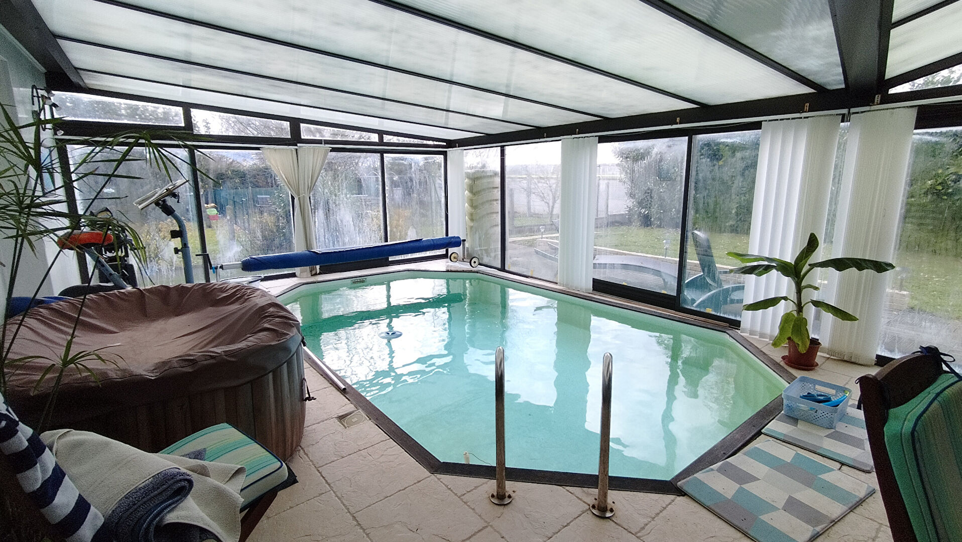 Bailleau-l'évêque, Belle construction de 1976 bâtie sur sous sol total. Elle se compose au rez de chaussée, d'une entrée, vaste salon-séjour, cuisine aménagée, deux chambres, salle de bains balnéo et WC. Grande véranda avec piscine enterrée.