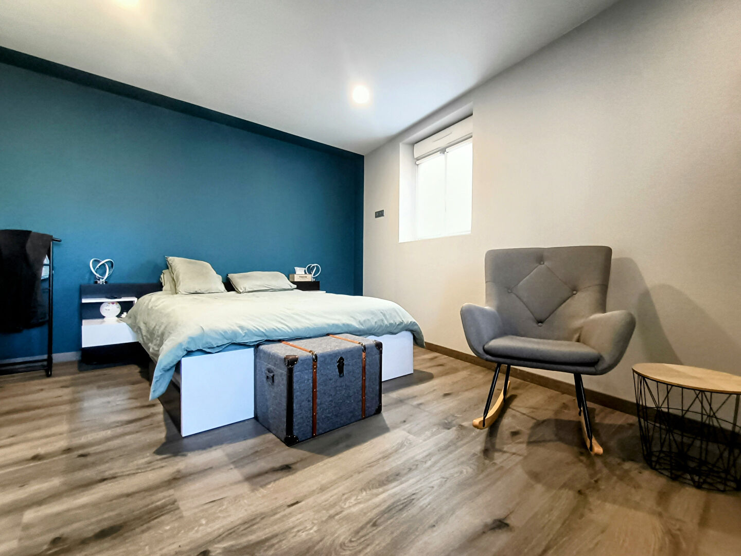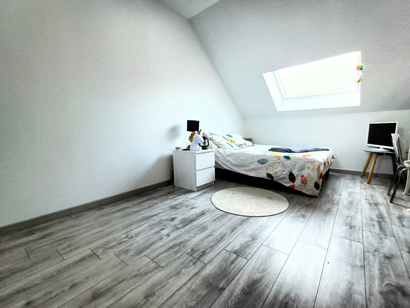 À l'étage : l'espace nuit se compose de trois grandes chambres, d'une salle d'eau avec WC et d'un vaste palier offrant un espace de détente ou de bureau.