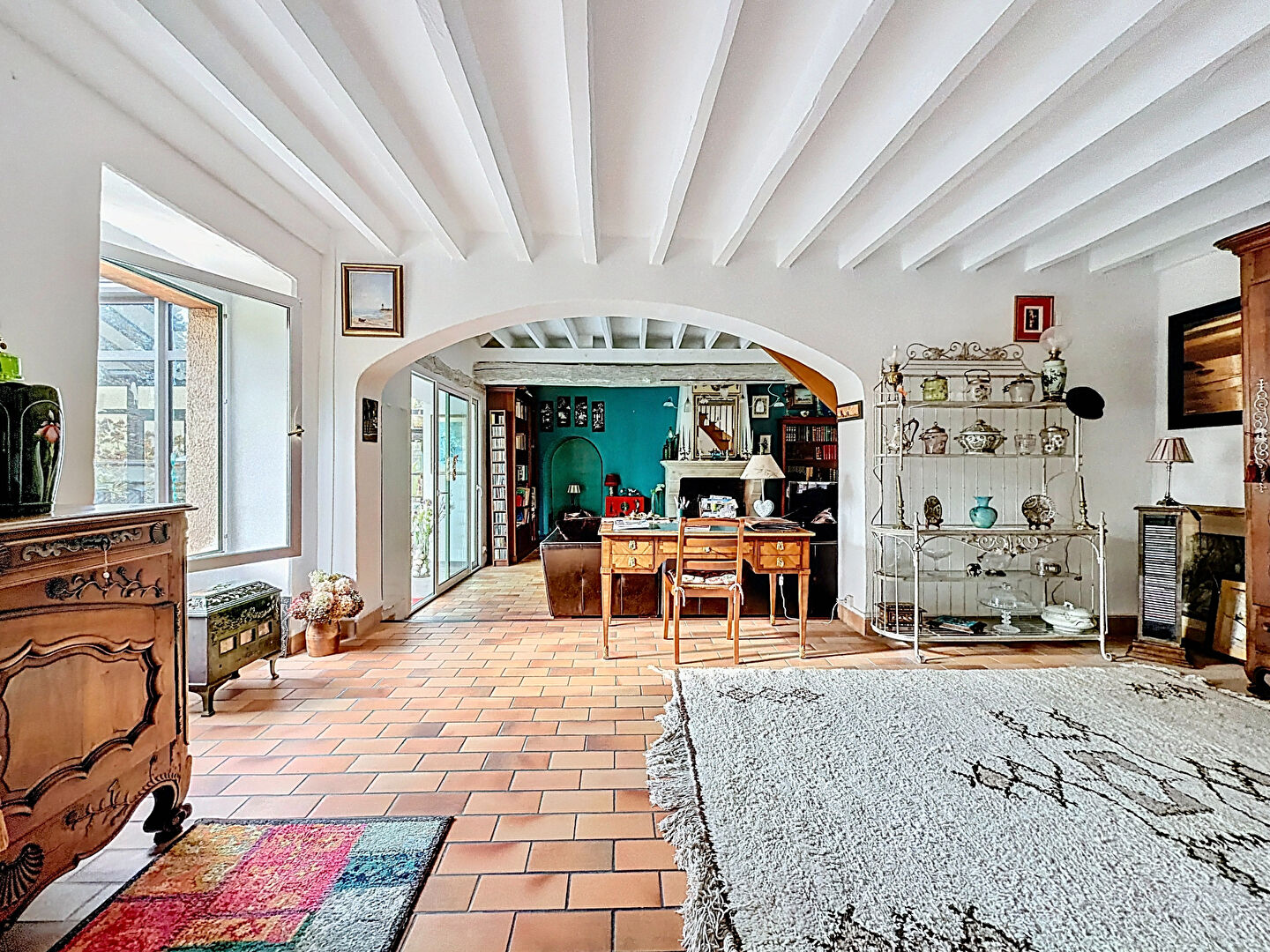 La maison principale s'ouvre sur un vaste séjour de 70 m², baigné de lumière, avec cuisine ouverte et accès direct à une magnifique véranda de 35 m², idéale pour profiter du jardin toute l'année.