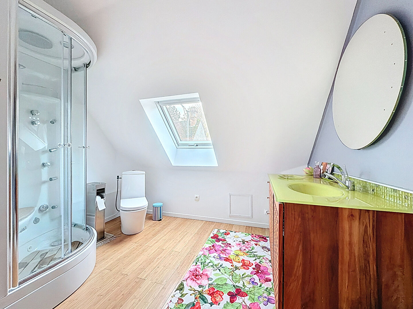 À l'étage, vous découvrirez trois chambres spacieuses, ainsi qu'une belle salle d'eau avec WC.