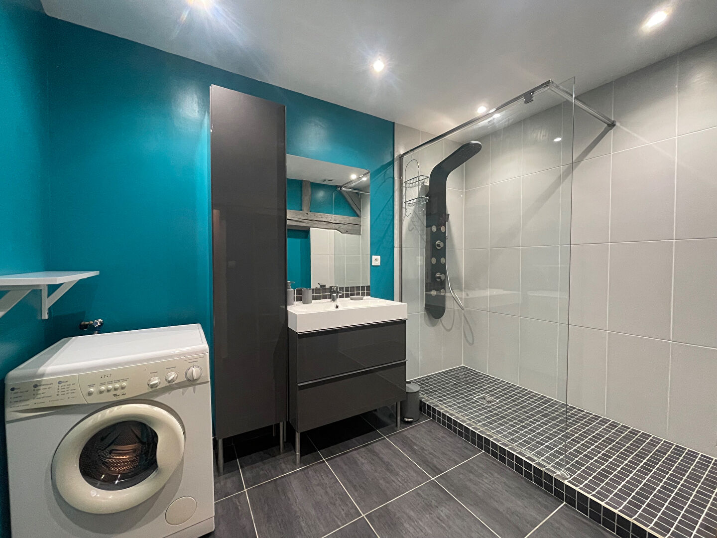 Il se compose d'une entrée avec de grands placards, un beau séjour avec une cuisine aménagée et équipée semi-ouverte, une chambre avec un grand dressing, une belle salle d'eau et des WC indépendants.