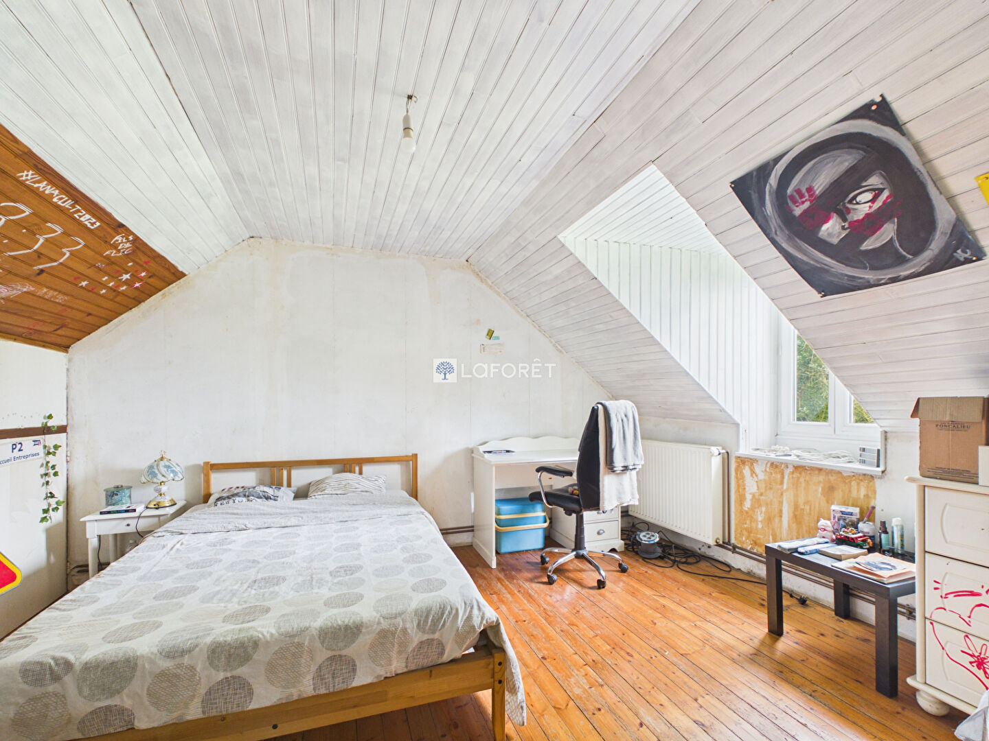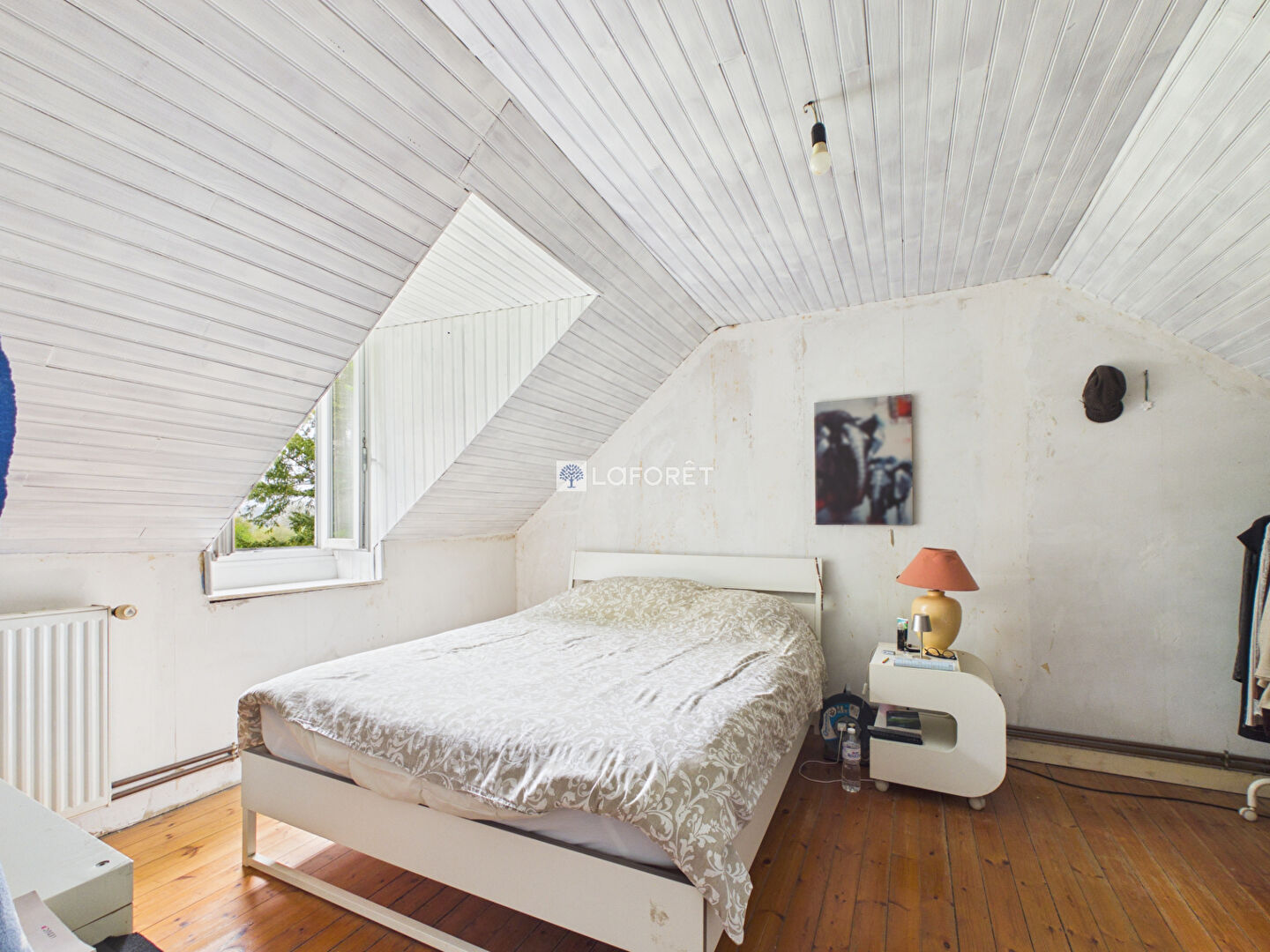 À l'étage, un palier desservant deux chambres.