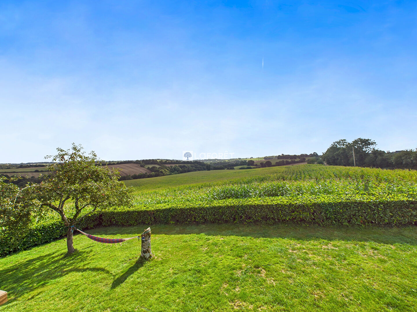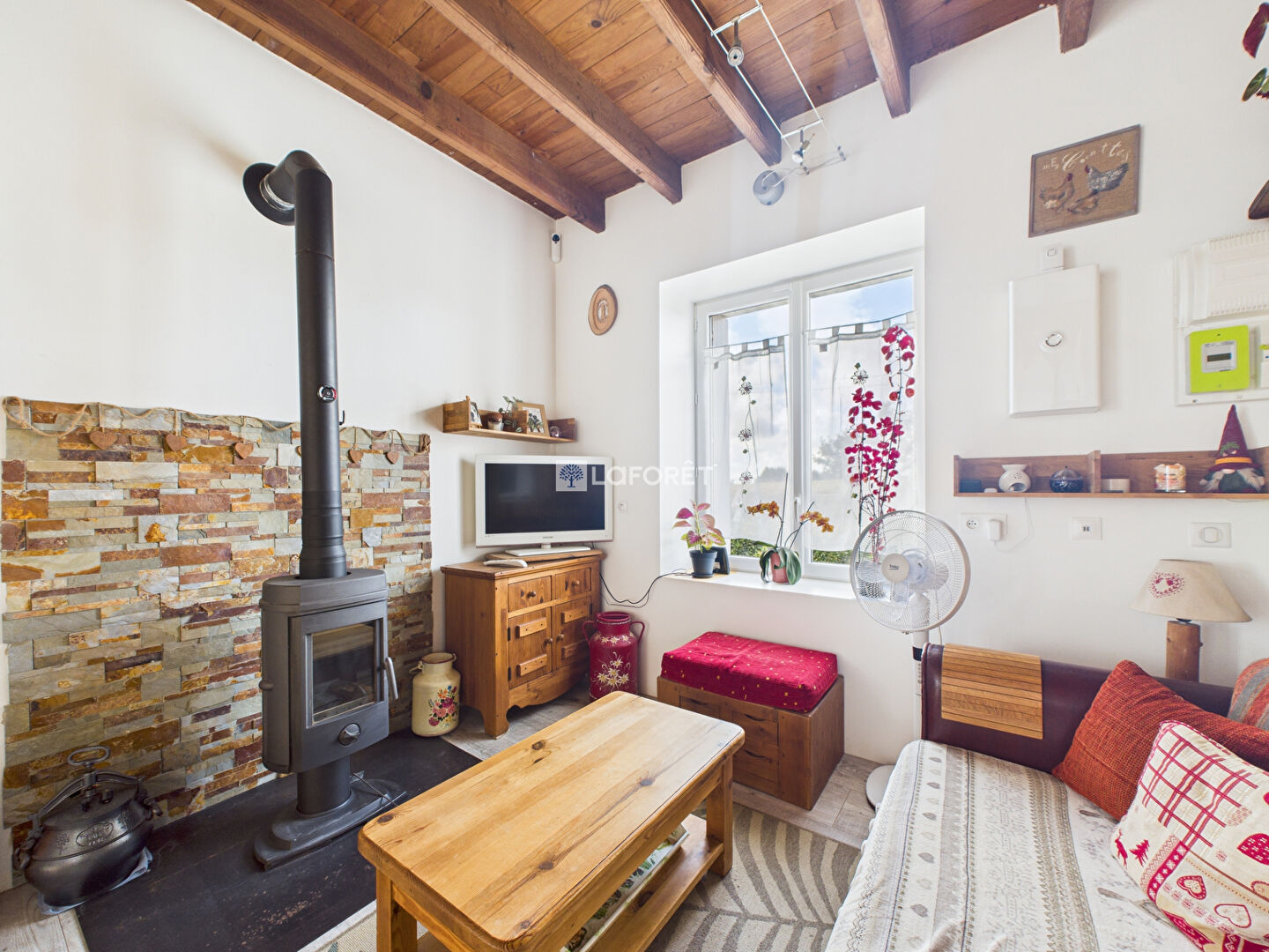 Au rez-de-chaussée : une pièce de vie lumineuse, une cuisine donnant accès à la terrasse offrant une vue dégagée sur la campagne, une chambre et une salle d'eau avec WC.