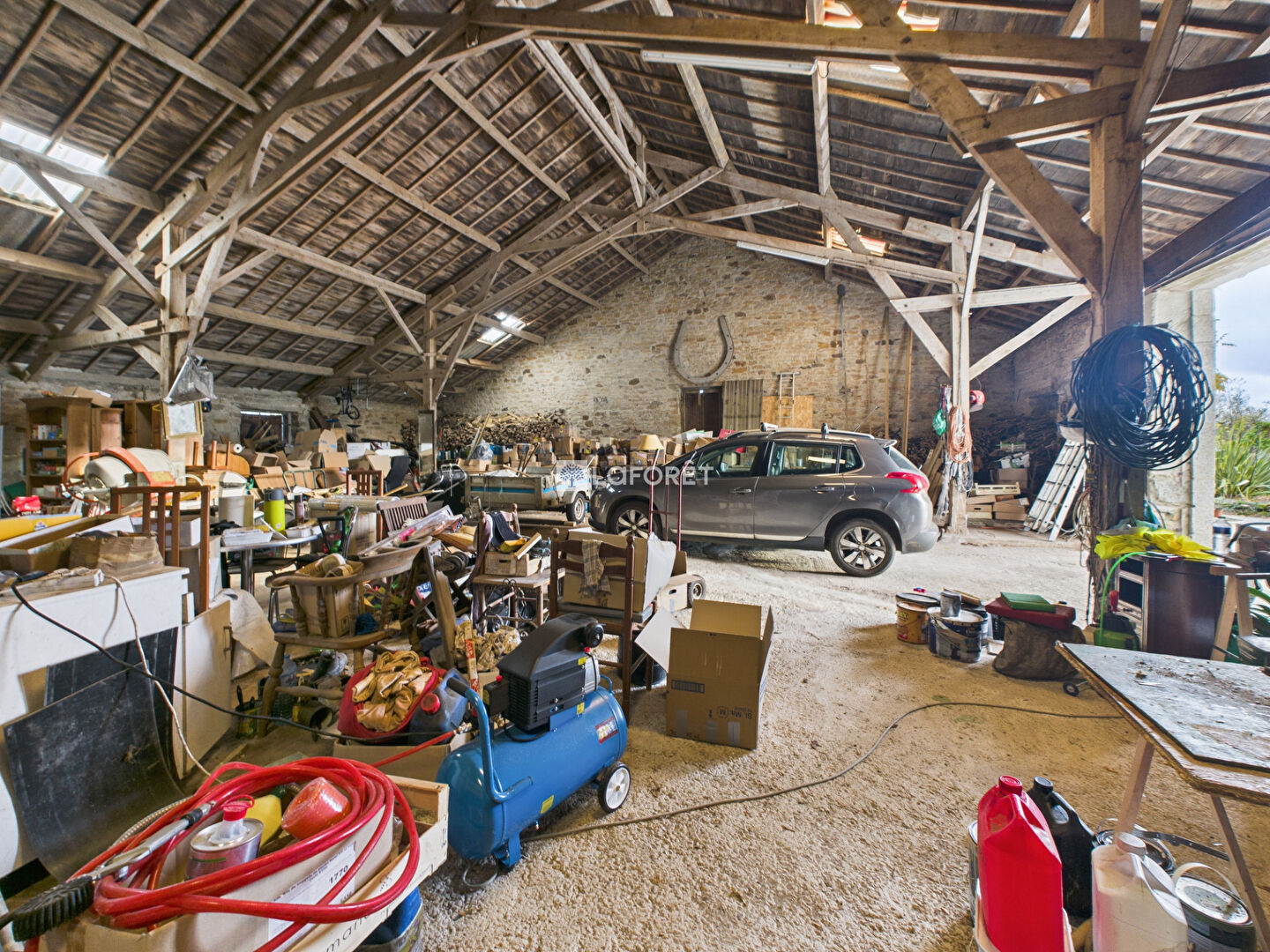 - Grange d'environ 307m2 en dalle béton (hauteur de porte 3,25m)