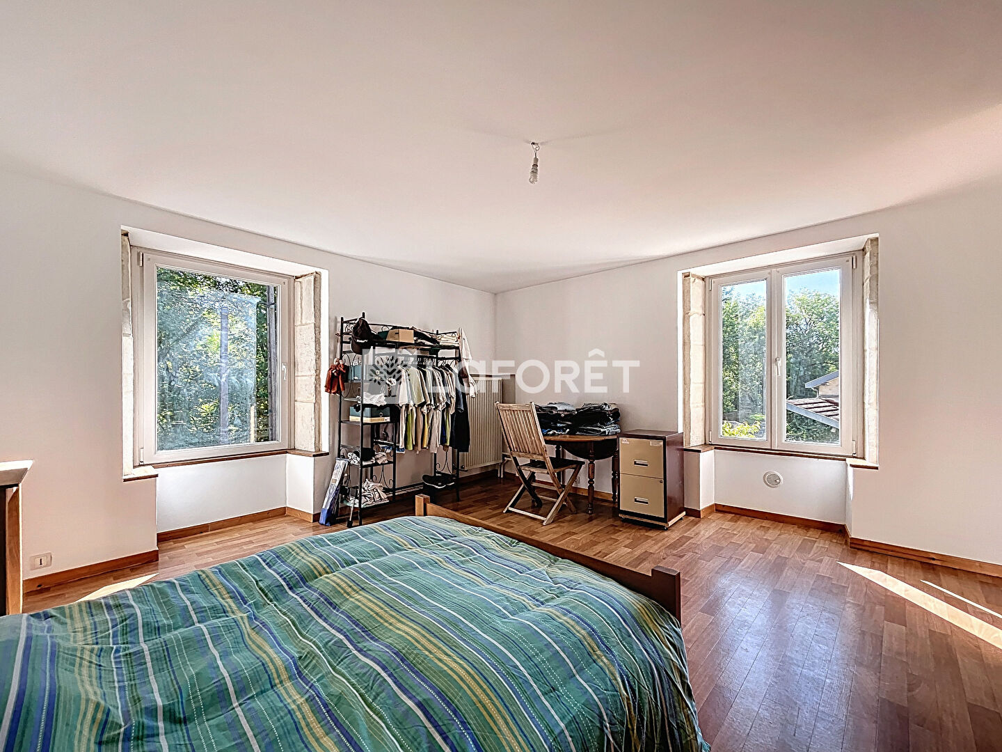 A l'étage, vous découvrirez un palier desservant une chambre et une suite parentale avec une chambre de 21m², un dressing, une salle d'eau, un w.c et un grenier.