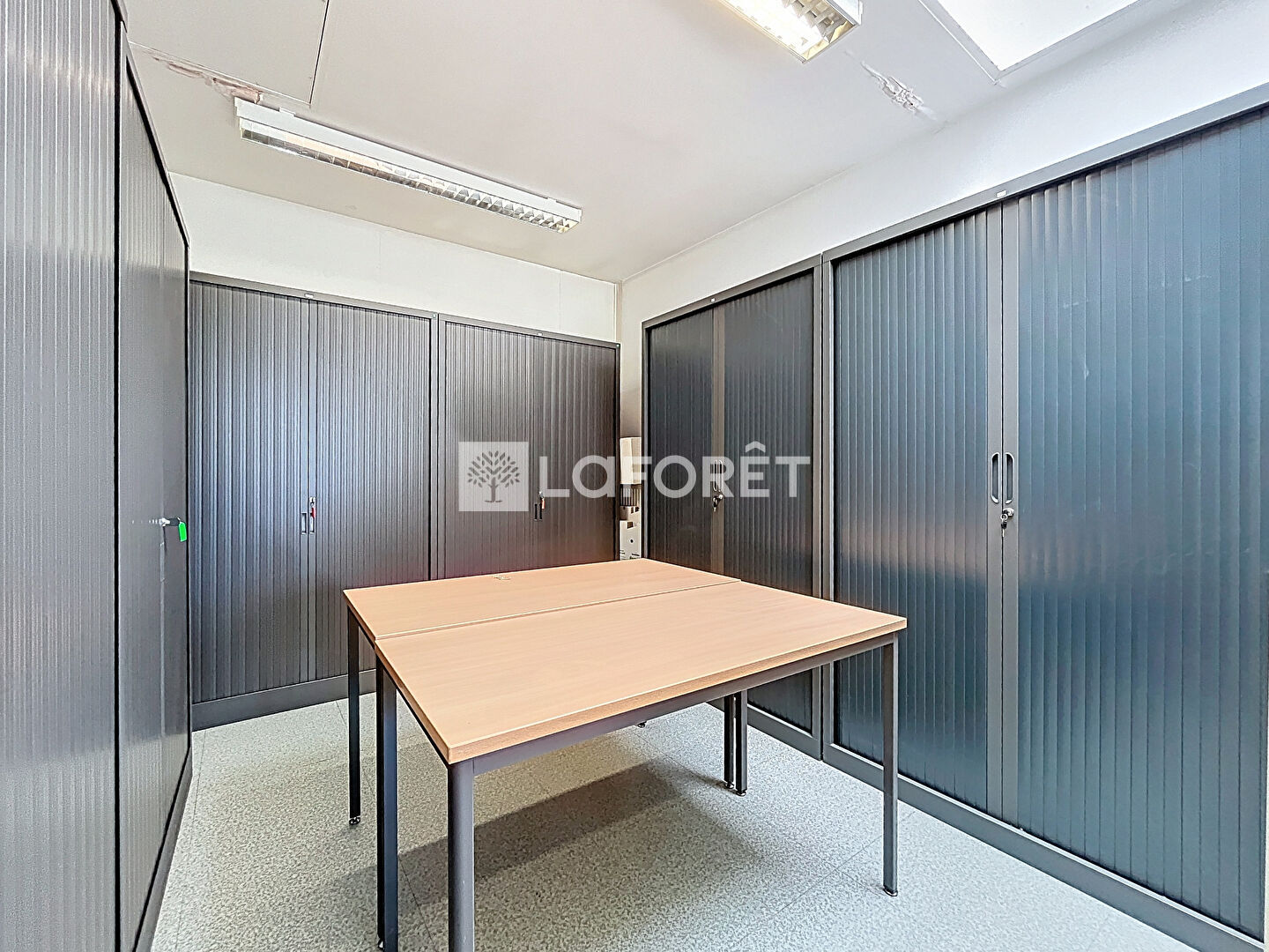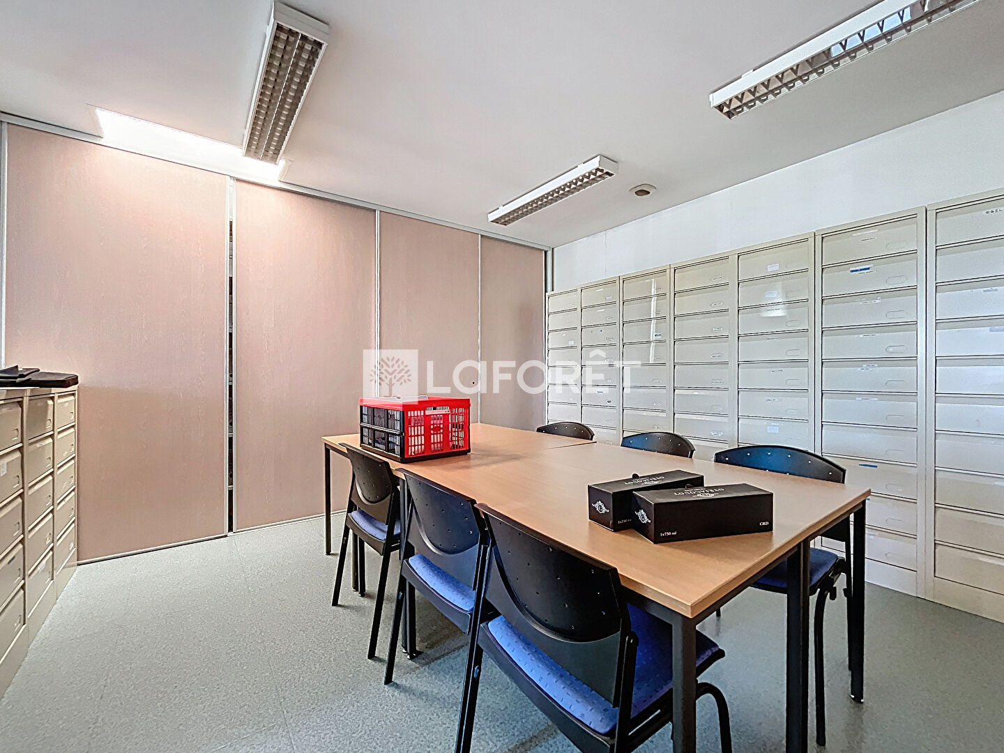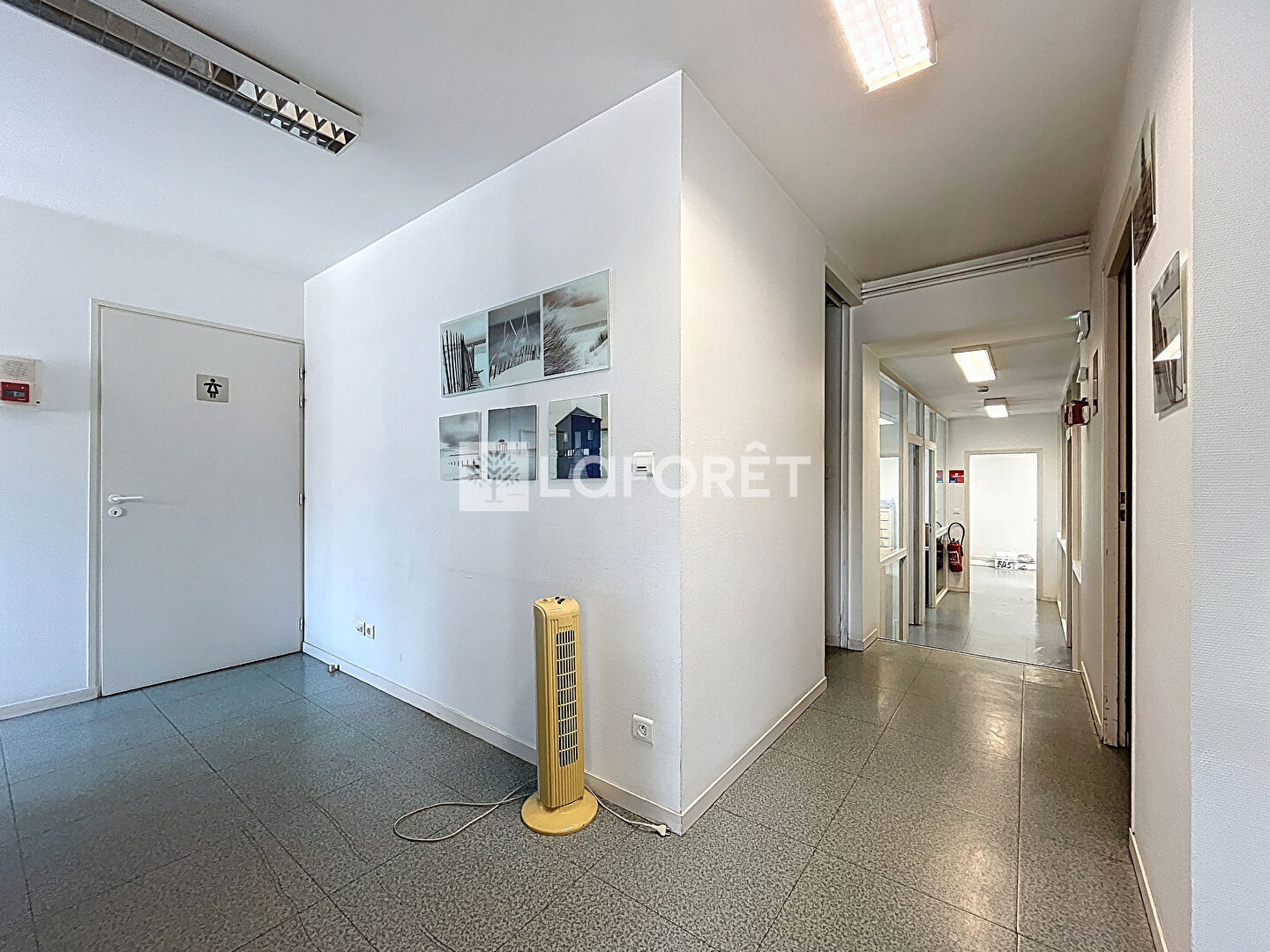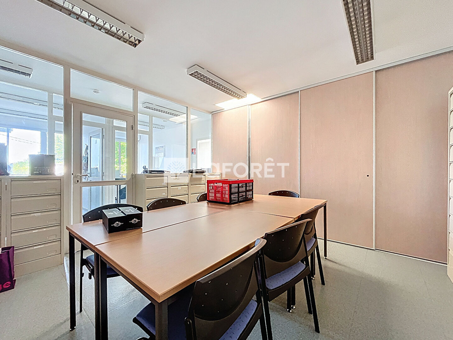 Situé en rez-de-chaussée, il se compose d'un espace d'accueil, de deux wc, d'un local technique, d'une cuisine, d'une salle de réunion, et de cinq bureaux.