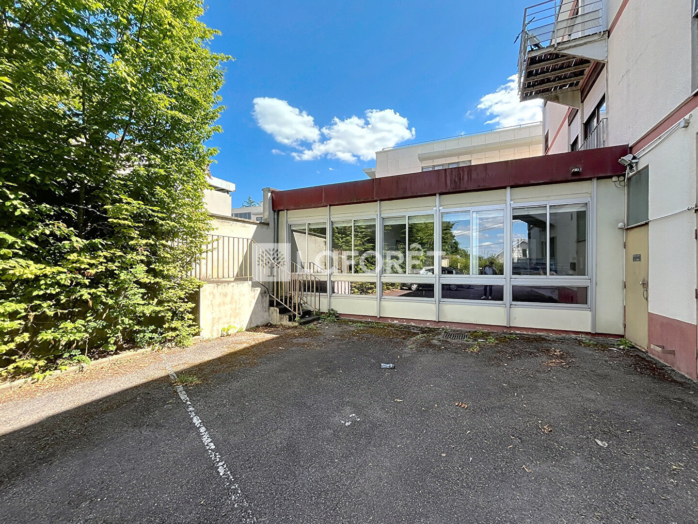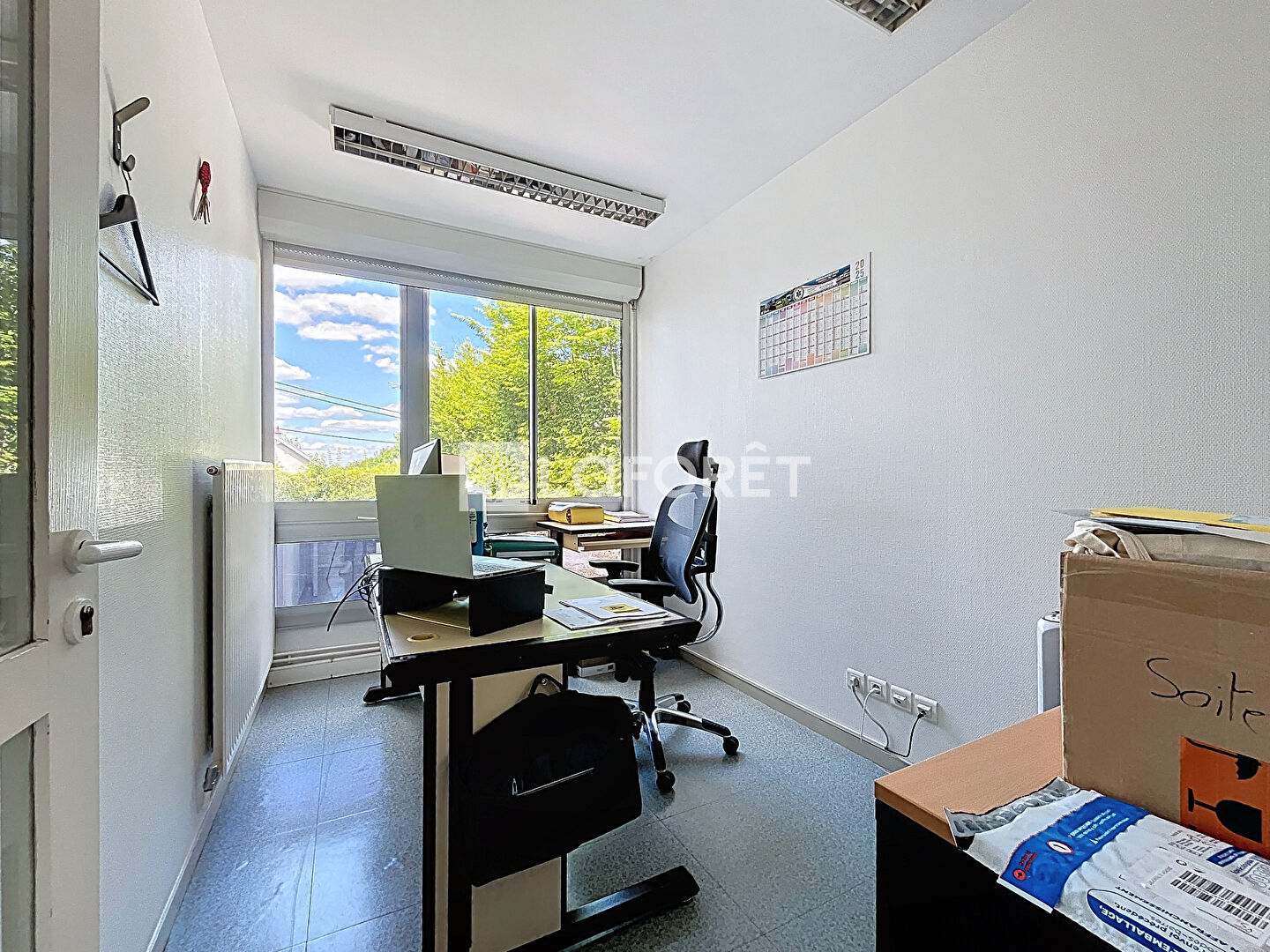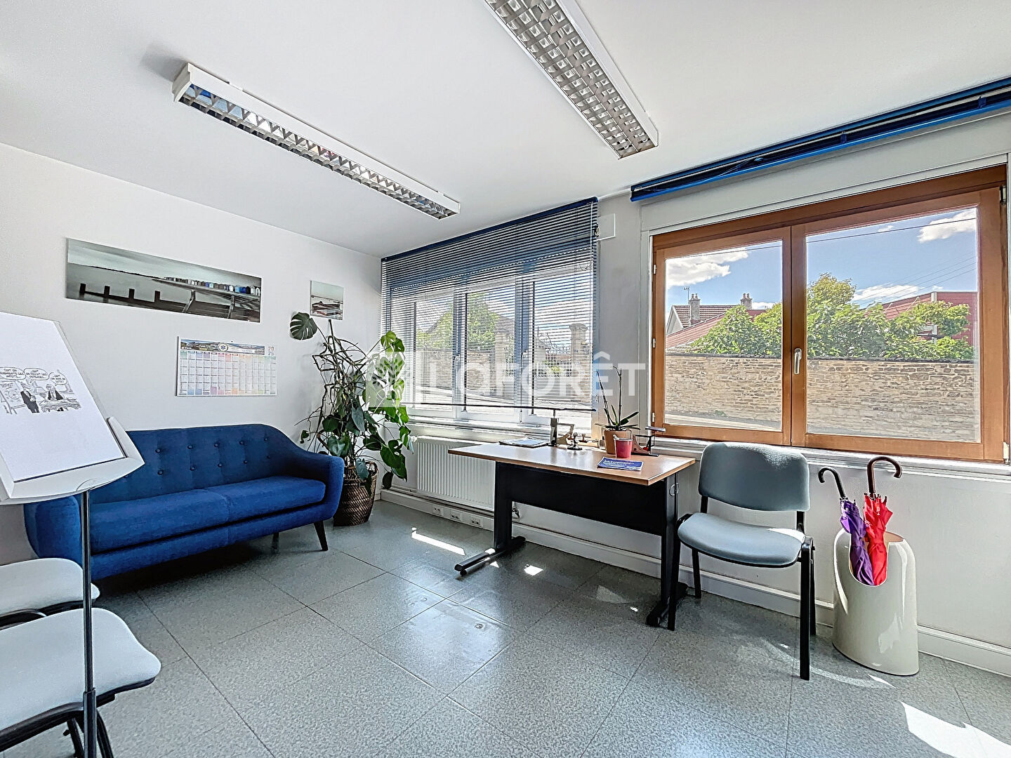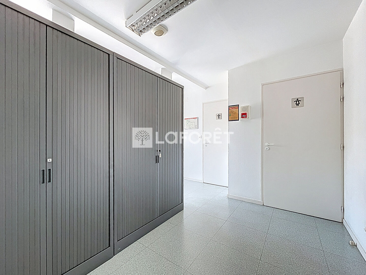 Situé en rez-de-chaussée, il se compose d'un espace d'accueil, de deux wc, d'un local technique, d'une cuisine, d'une salle de réunion, et de cinq bureaux.