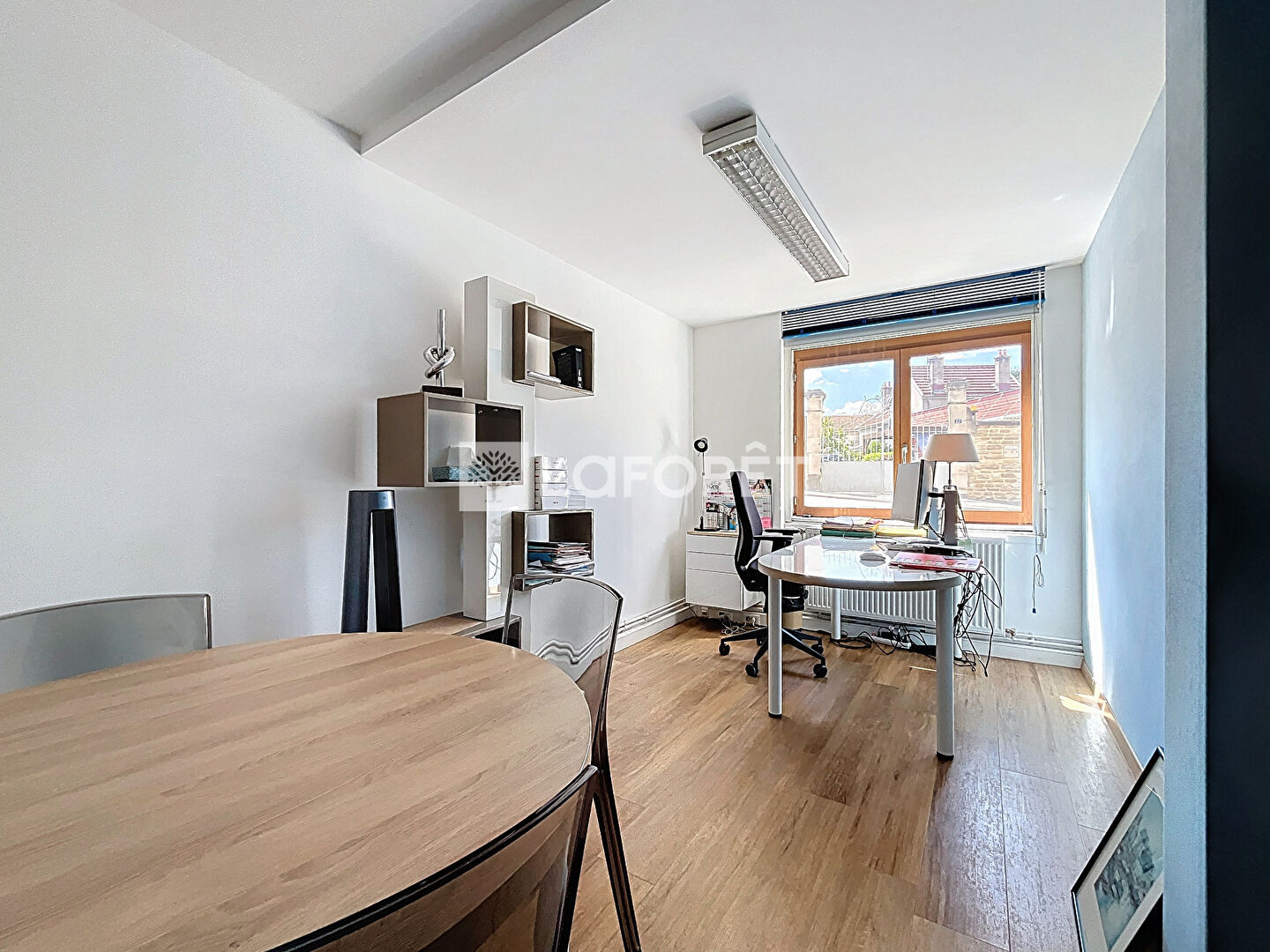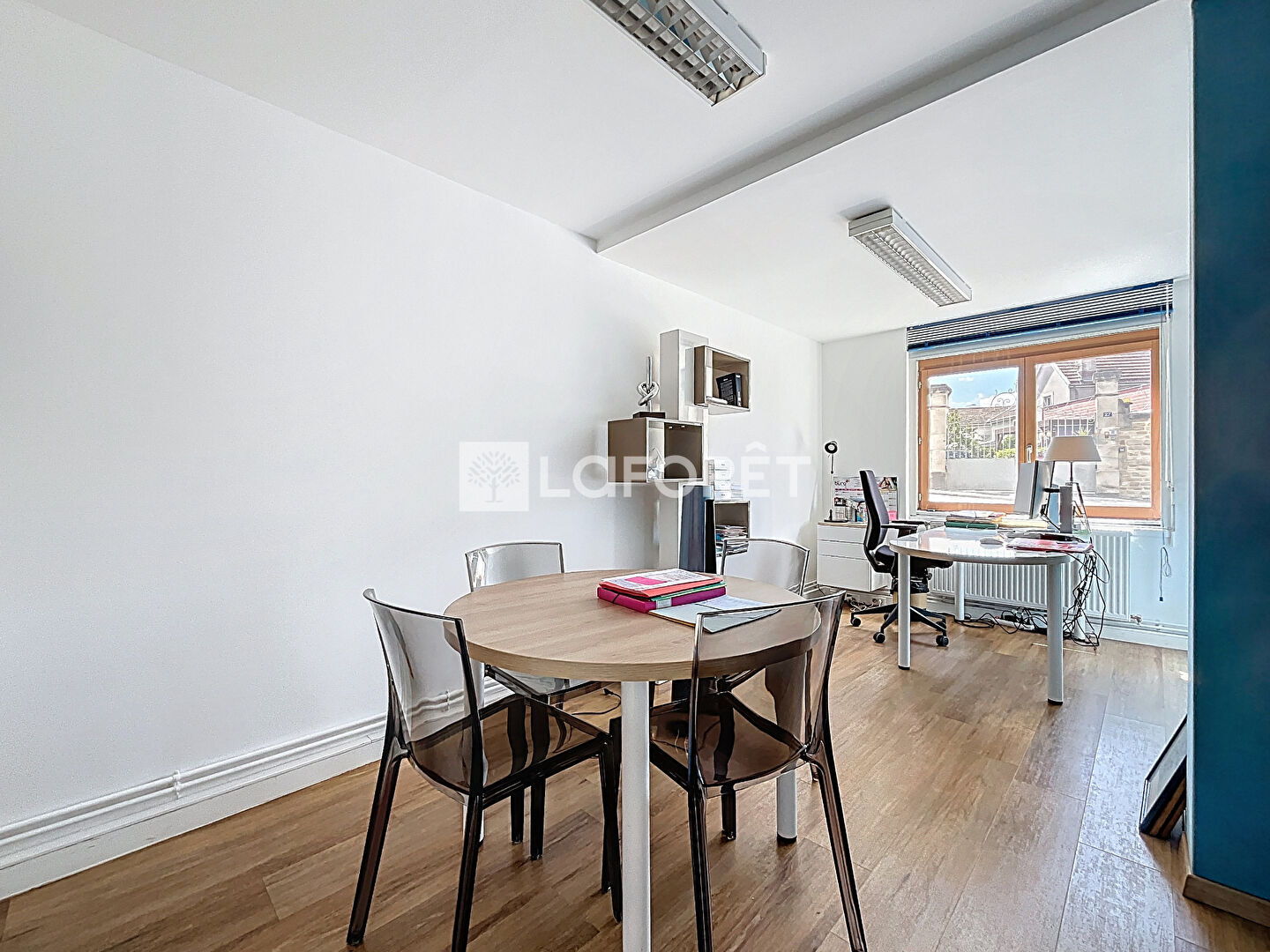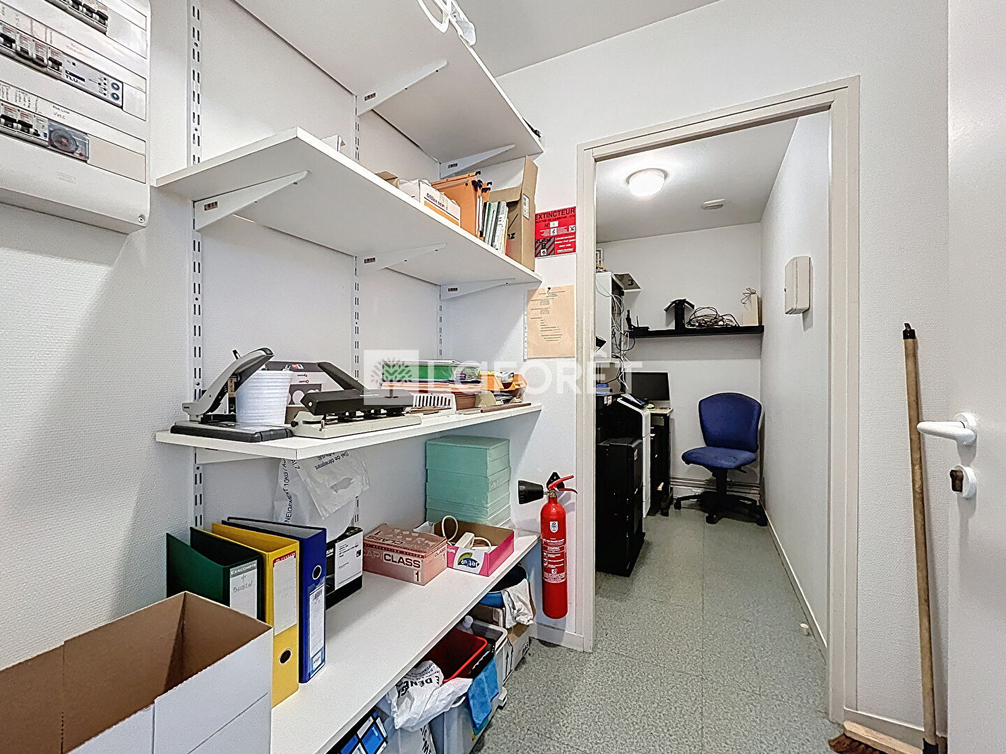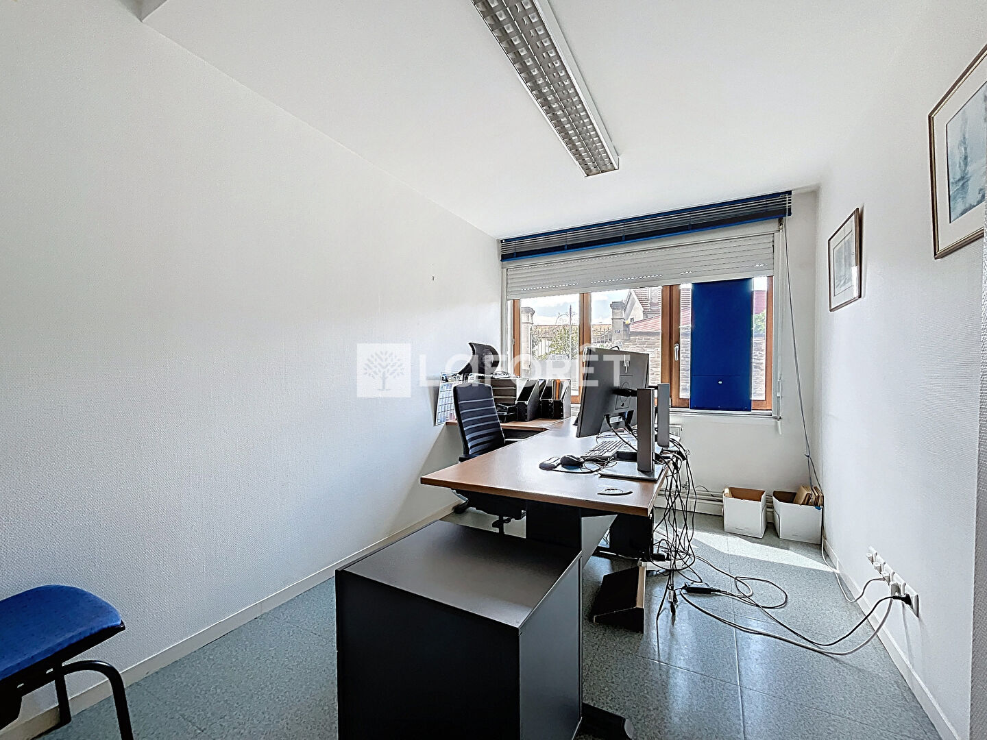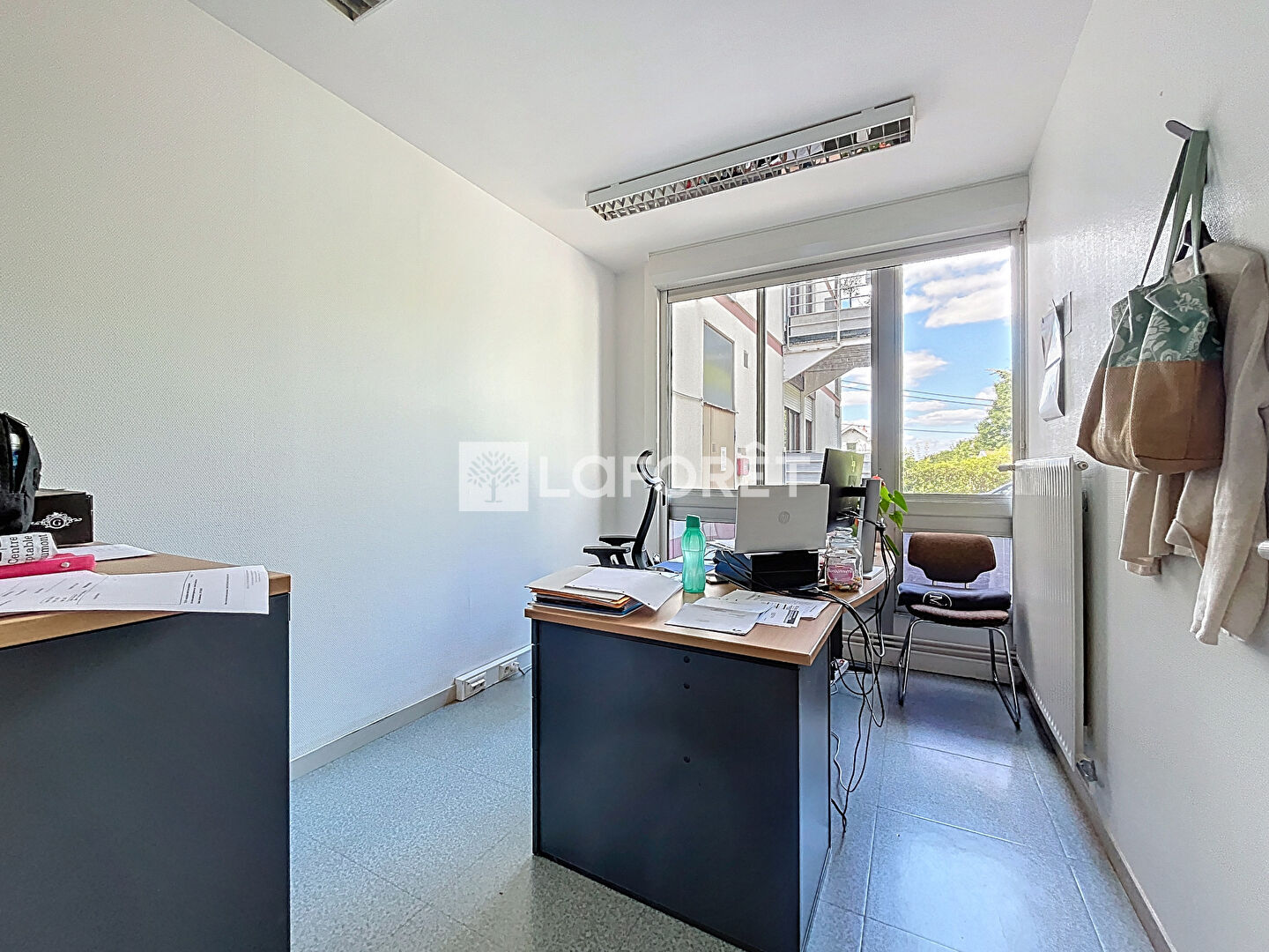 Situé en rez-de-chaussée, il se compose d'un espace d'accueil, de deux wc, d'un local technique, d'une cuisine, d'une salle de réunion, et de cinq bureaux.