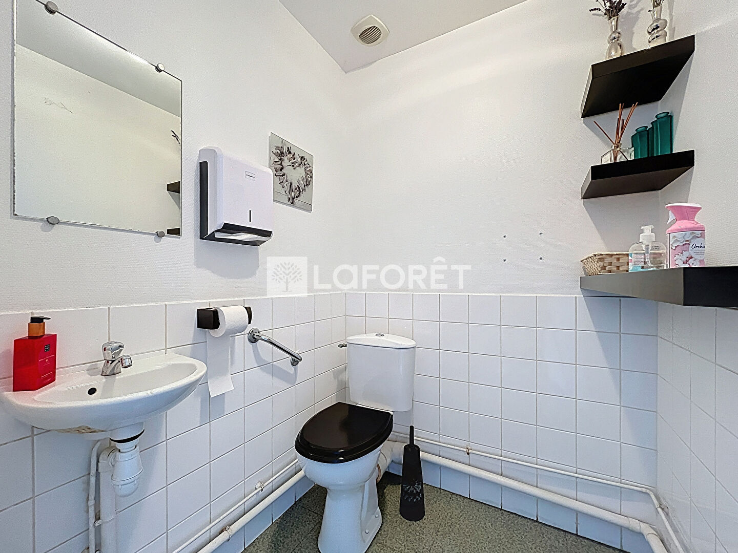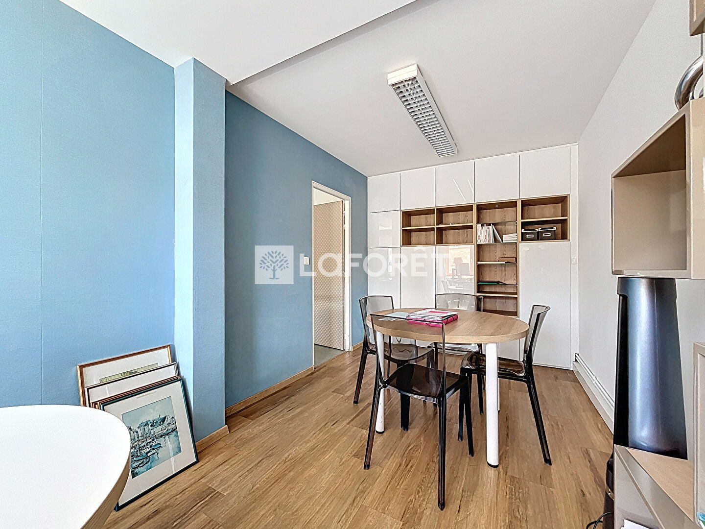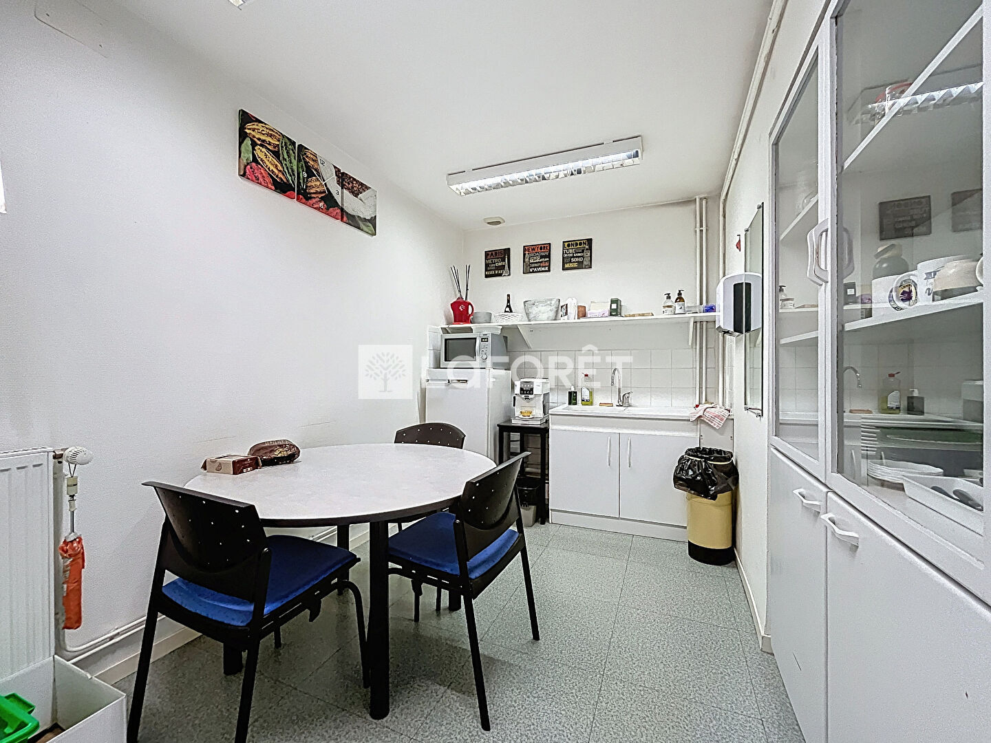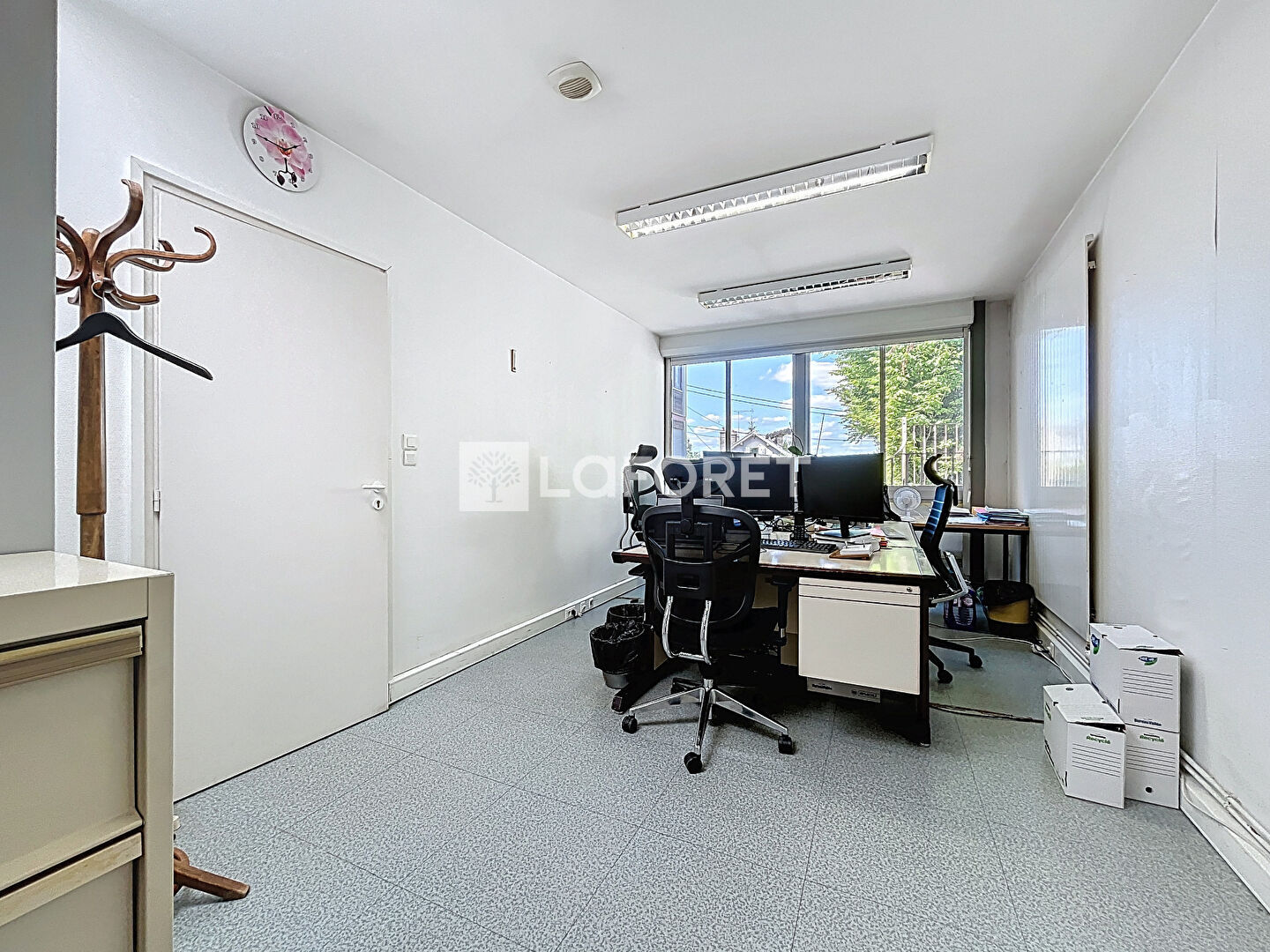 Situé en rez-de-chaussée, il se compose d'un espace d'accueil, de deux wc, d'un local technique, d'une cuisine, d'une salle de réunion, et de cinq bureaux.