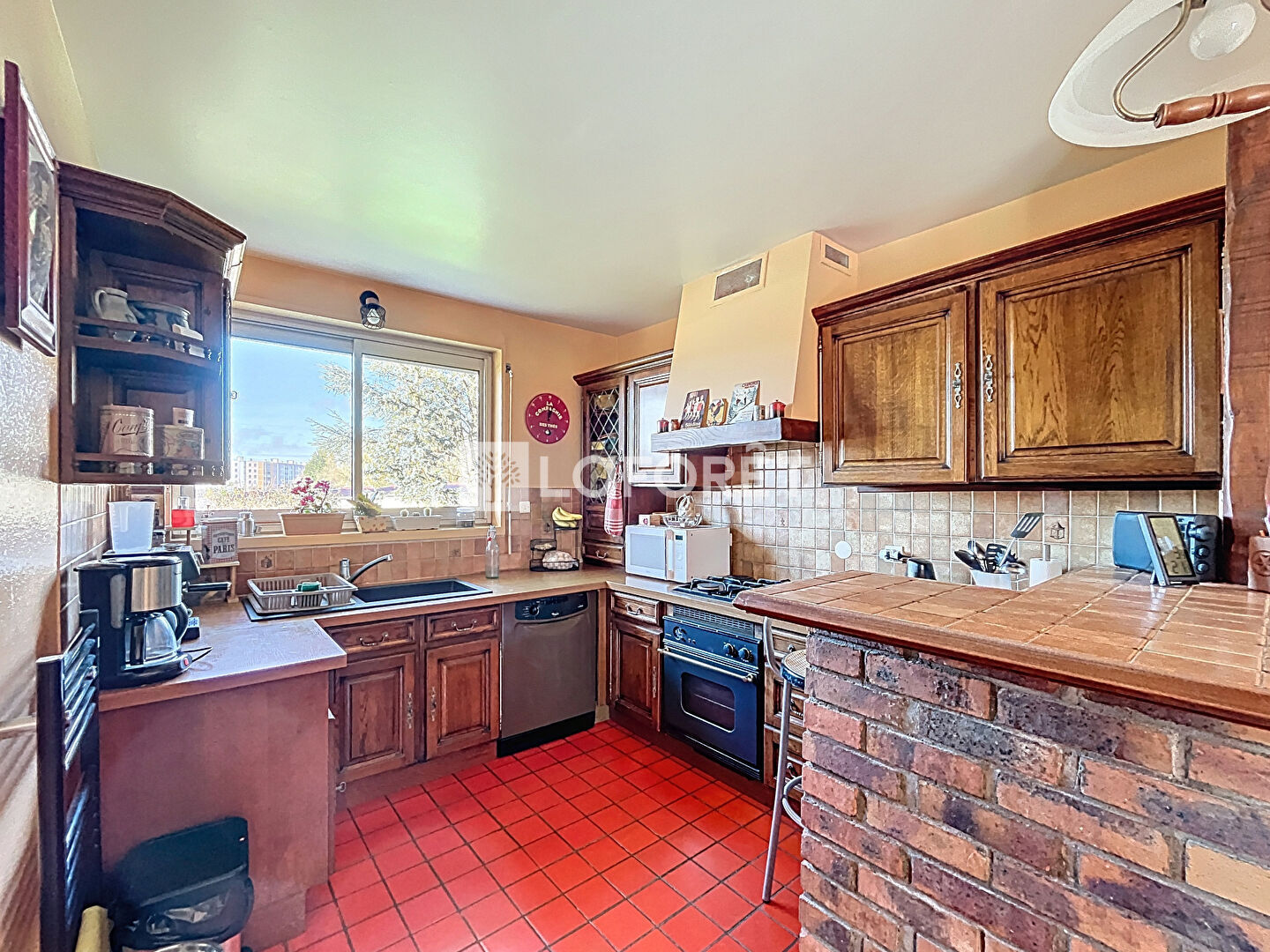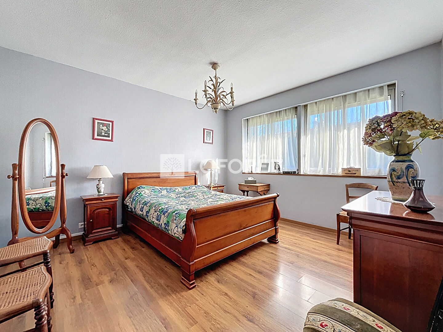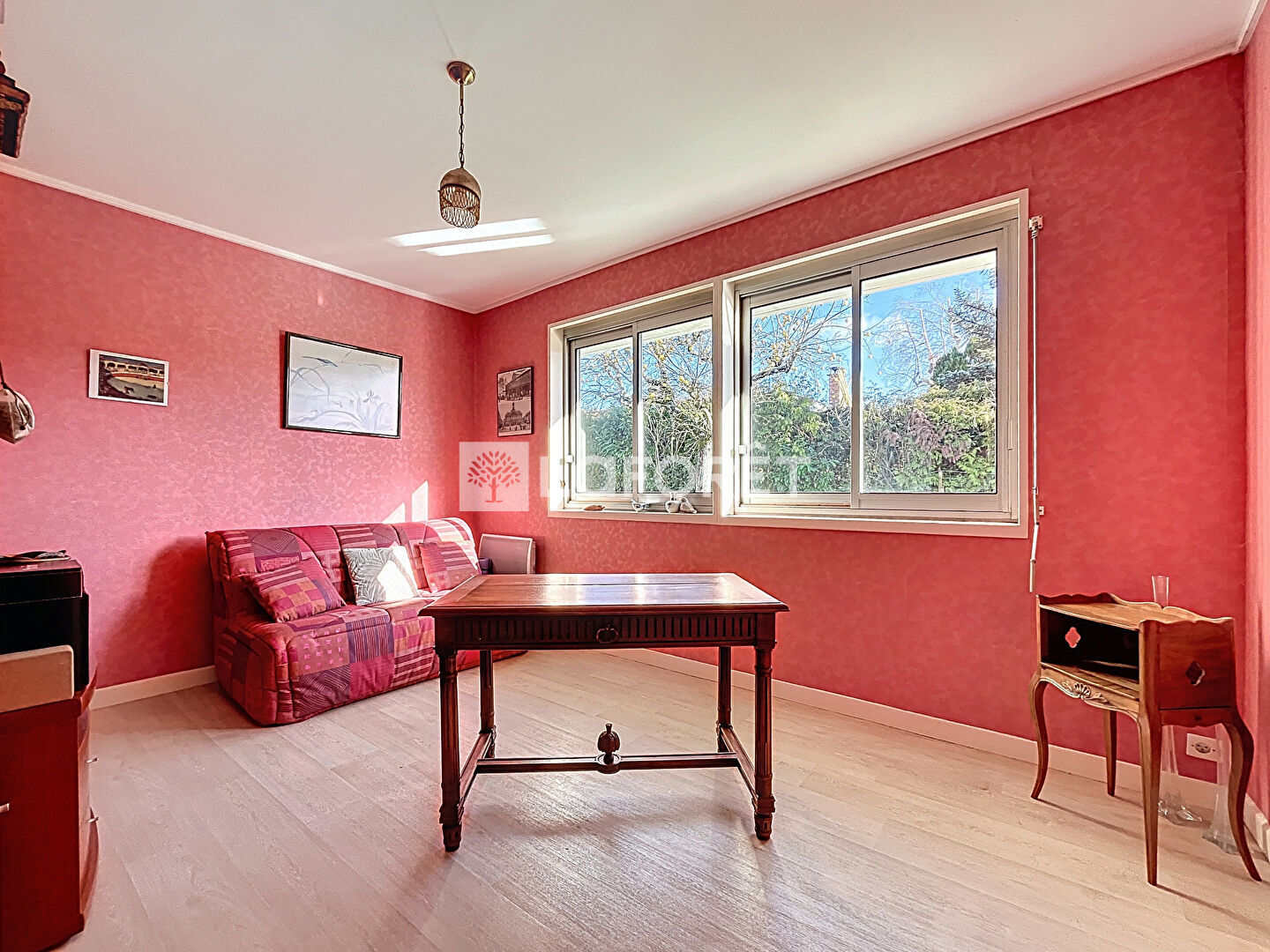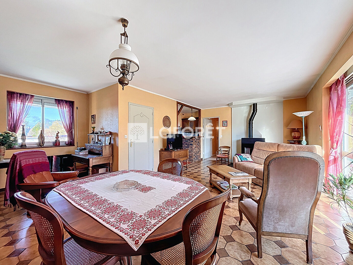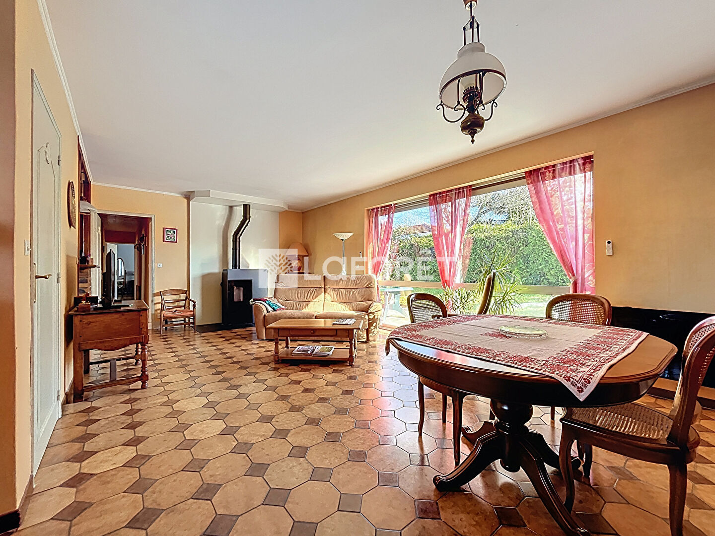 Il se compose d'une entrée avec un spacieux placard, un lumineux séjour de 36m² avec poêle à granulés, une cuisine aménagée, une buanderie, une salle de bains, un w.c et quatre chambres dont une avec salle d'eau.