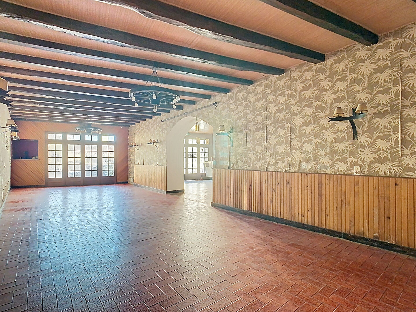 Au rez-de-chaussée, vous aurez à votre disposition deux grandes salles de presque 60m² chacune (actuellement salle de bar et restaurant), une vaste cuisine, des sanitaires, divers espaces de rangements et caves, une ancienne chaufferie et un garage de 56m².
