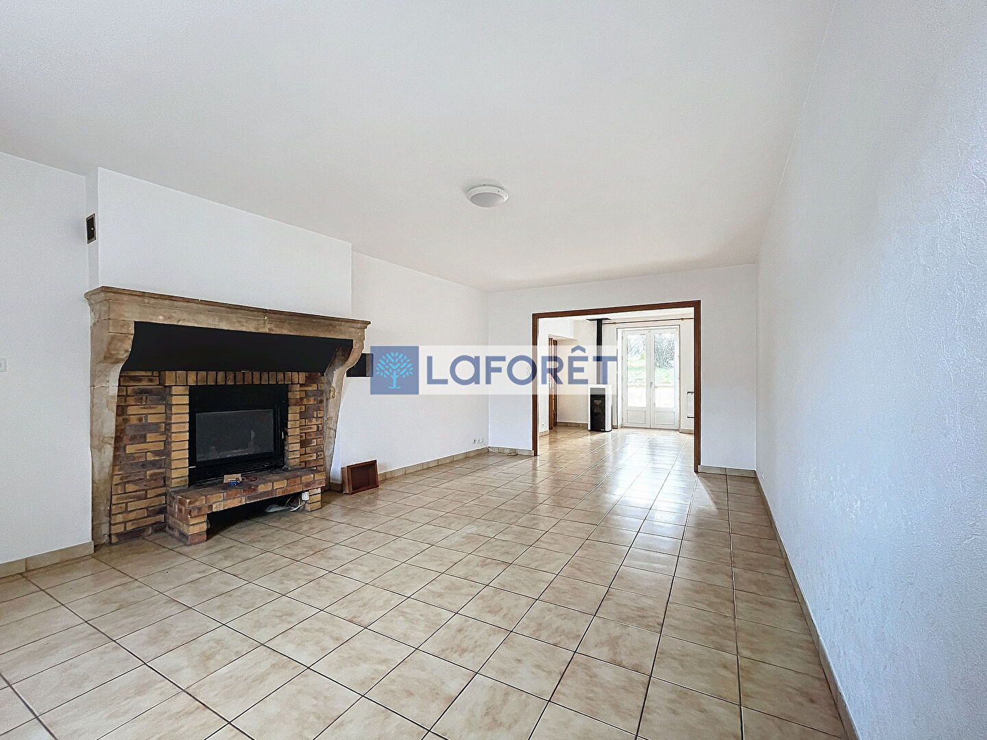 - Grande pièce de vie lumineuse avec salon, séjour et cuisine ouverte offrant un accès direct au terrain clos de 672m² à l'arrière.