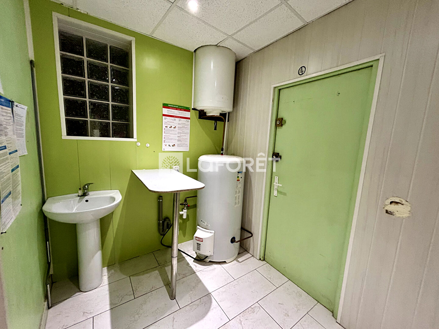 À l'arrière du local, vous trouverez un espace sanitaire, une réserve et une remise.