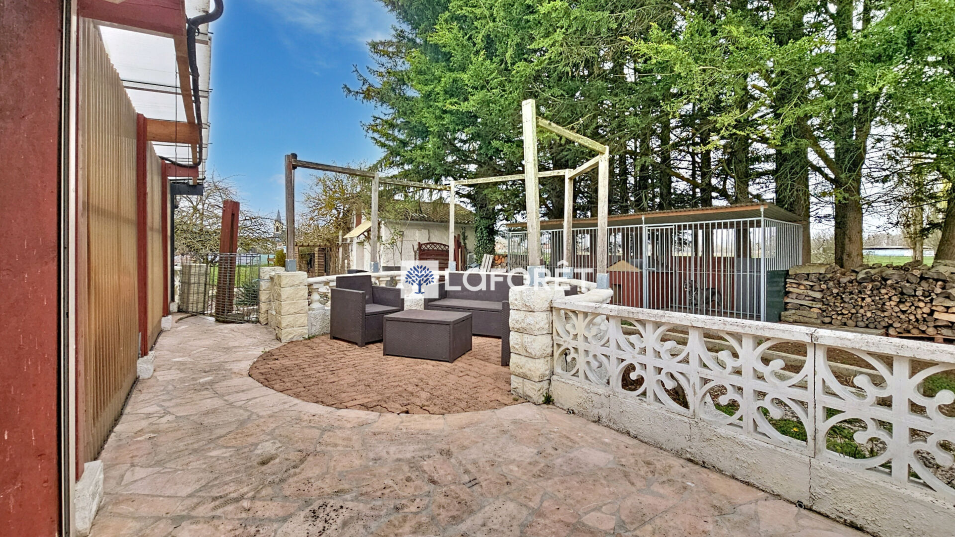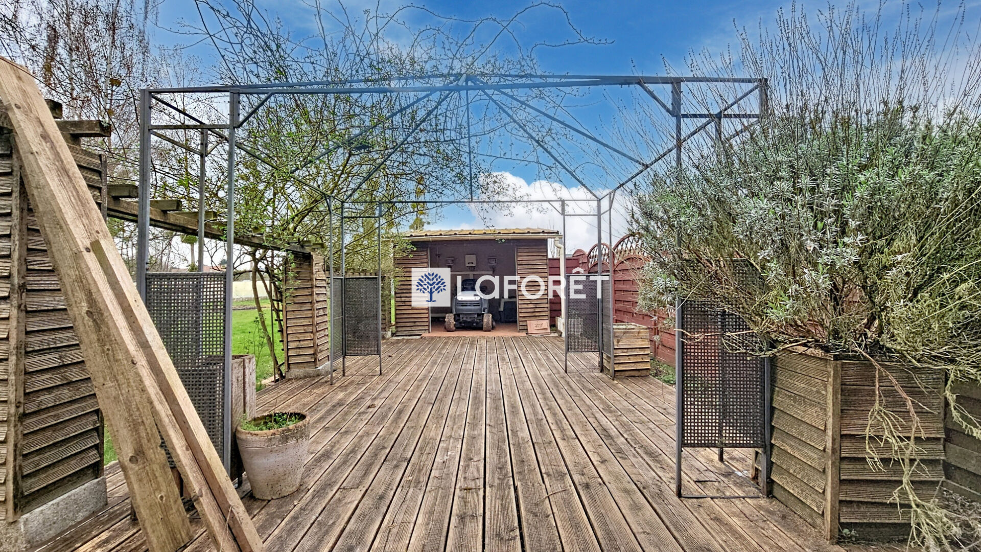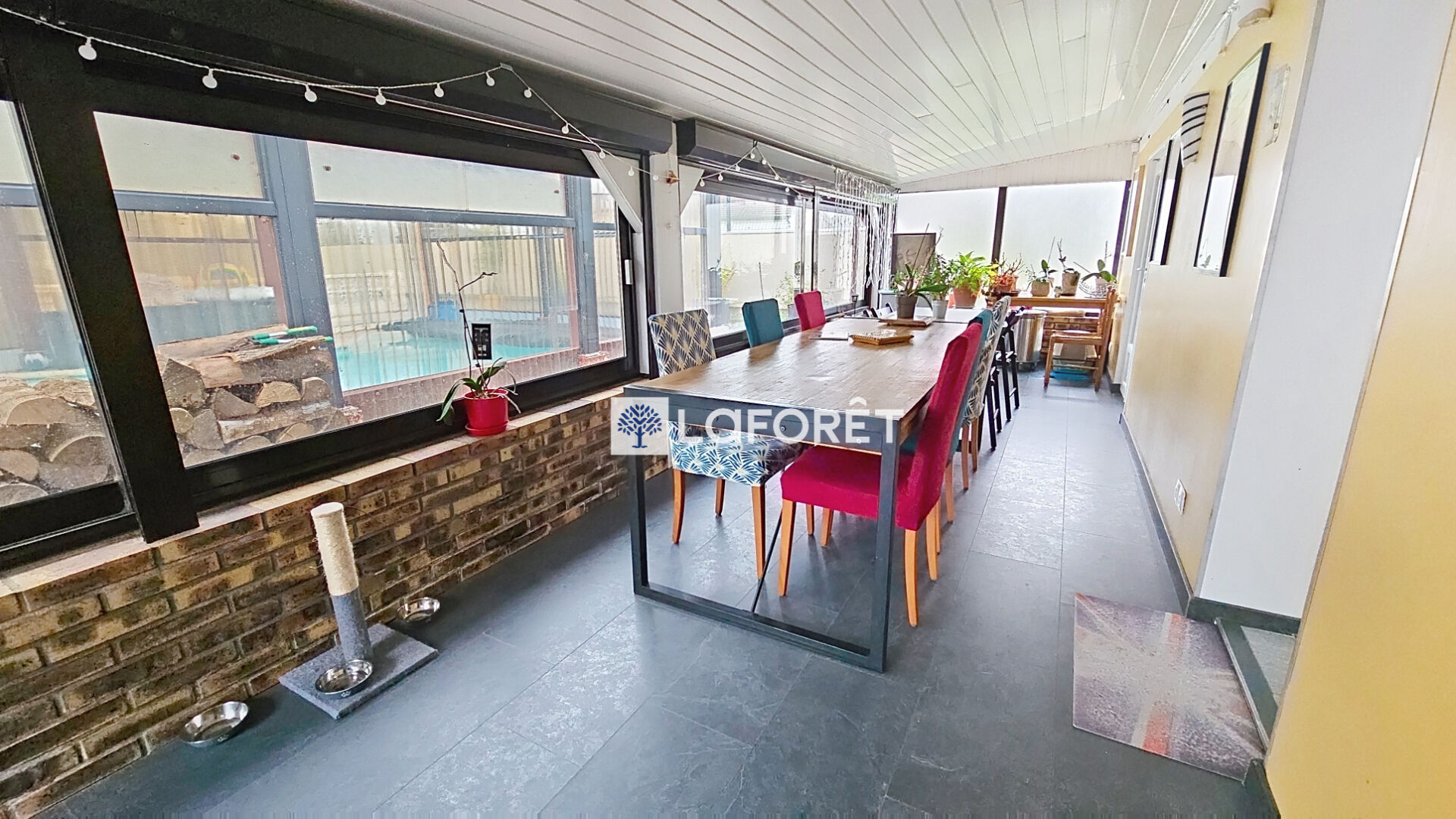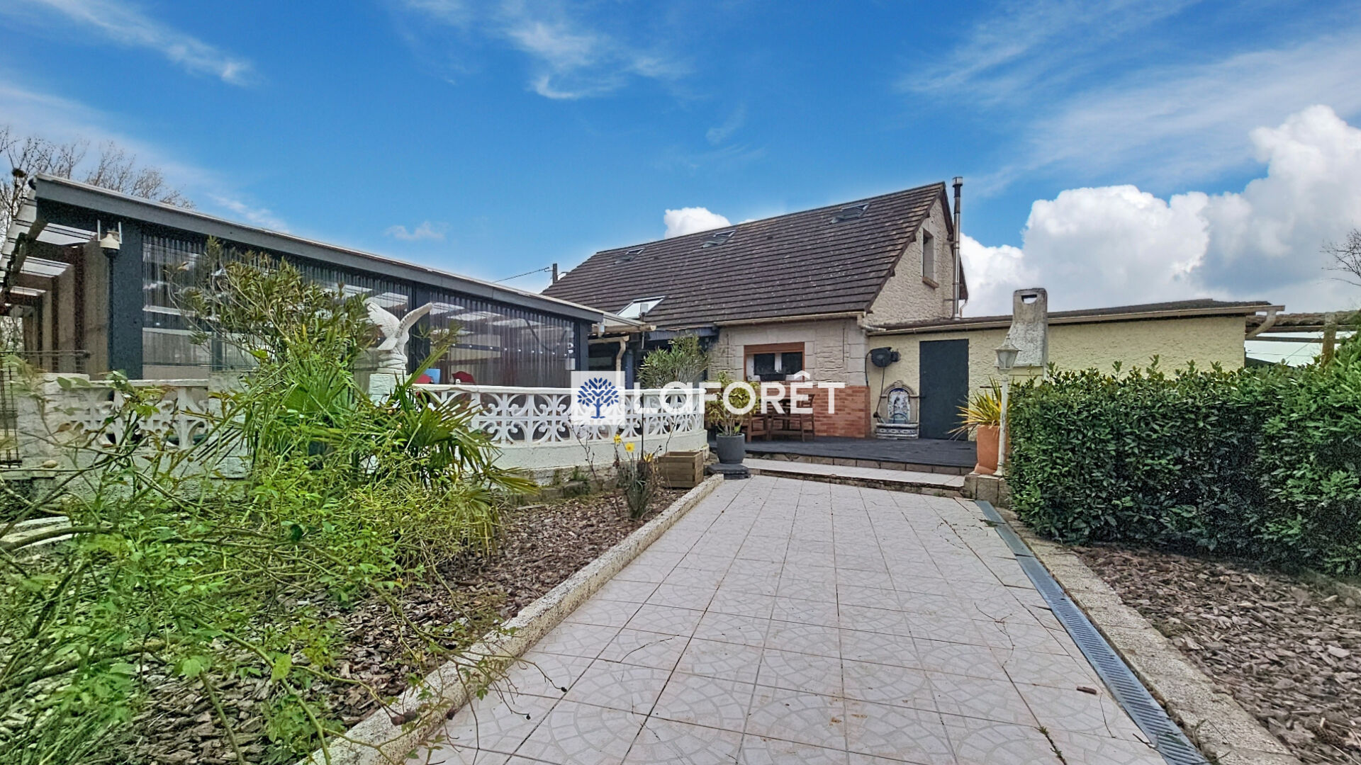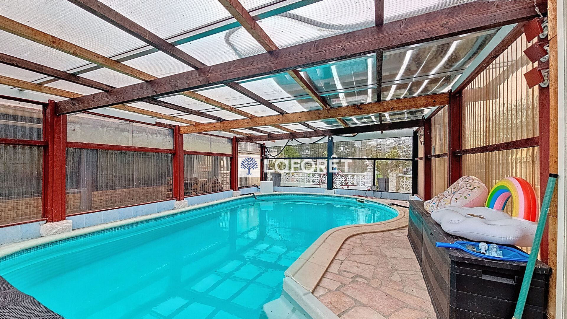 À l'extérieur, vous profiterez d'un terrain de plus de 1 600 m² comprenant plusieurs terrasses, une piscine couverte, un atelier et un garage.