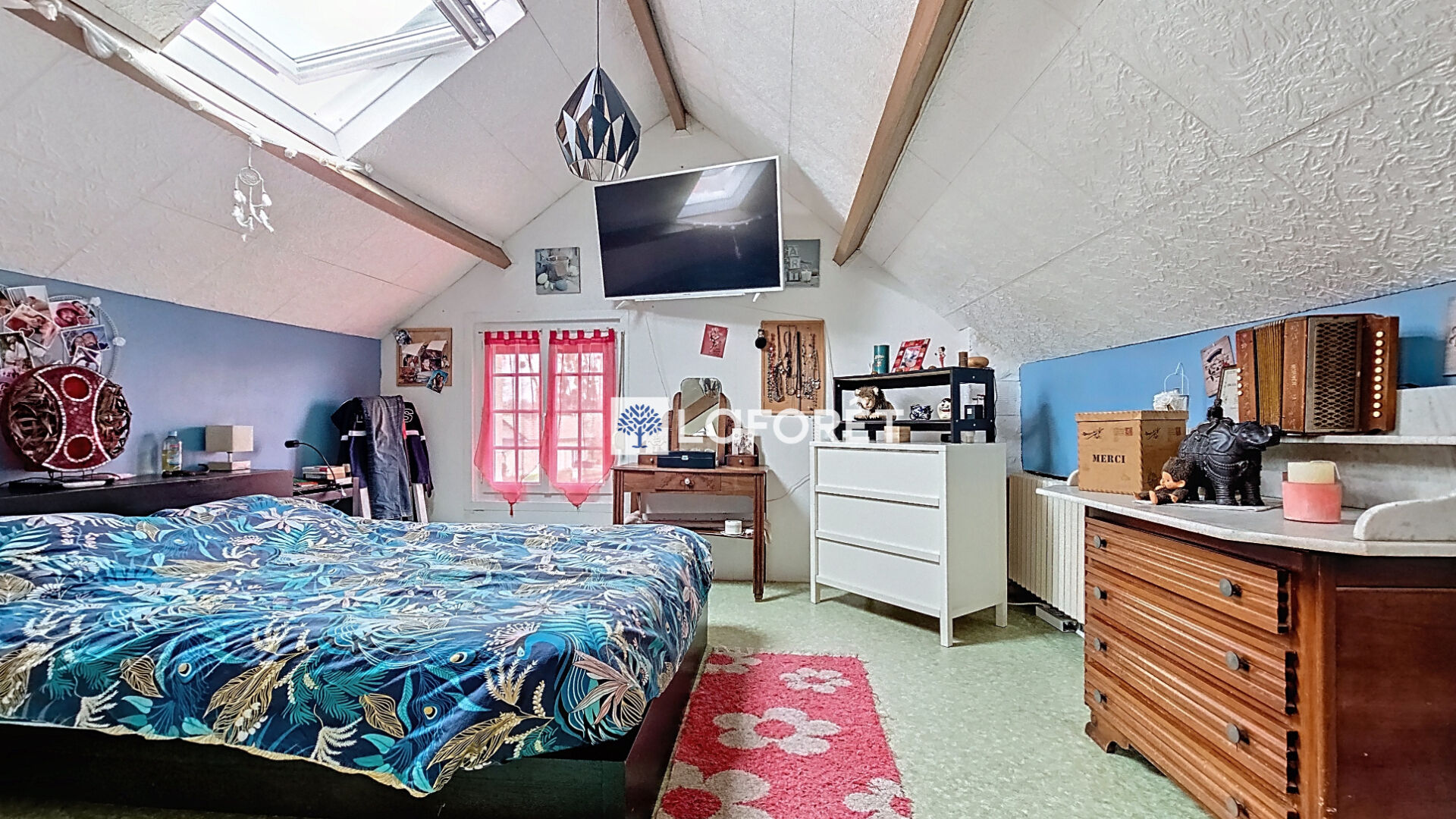 À l'étage, un espace bureau dessert deux chambres.