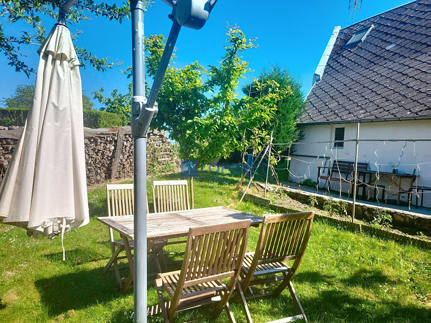 À l'extérieur, le terrain de 490 m² est un vrai petit coin de paradis, avec un verger luxuriant qui apporte une touche de verdure et de sérénité à votre quotidien.