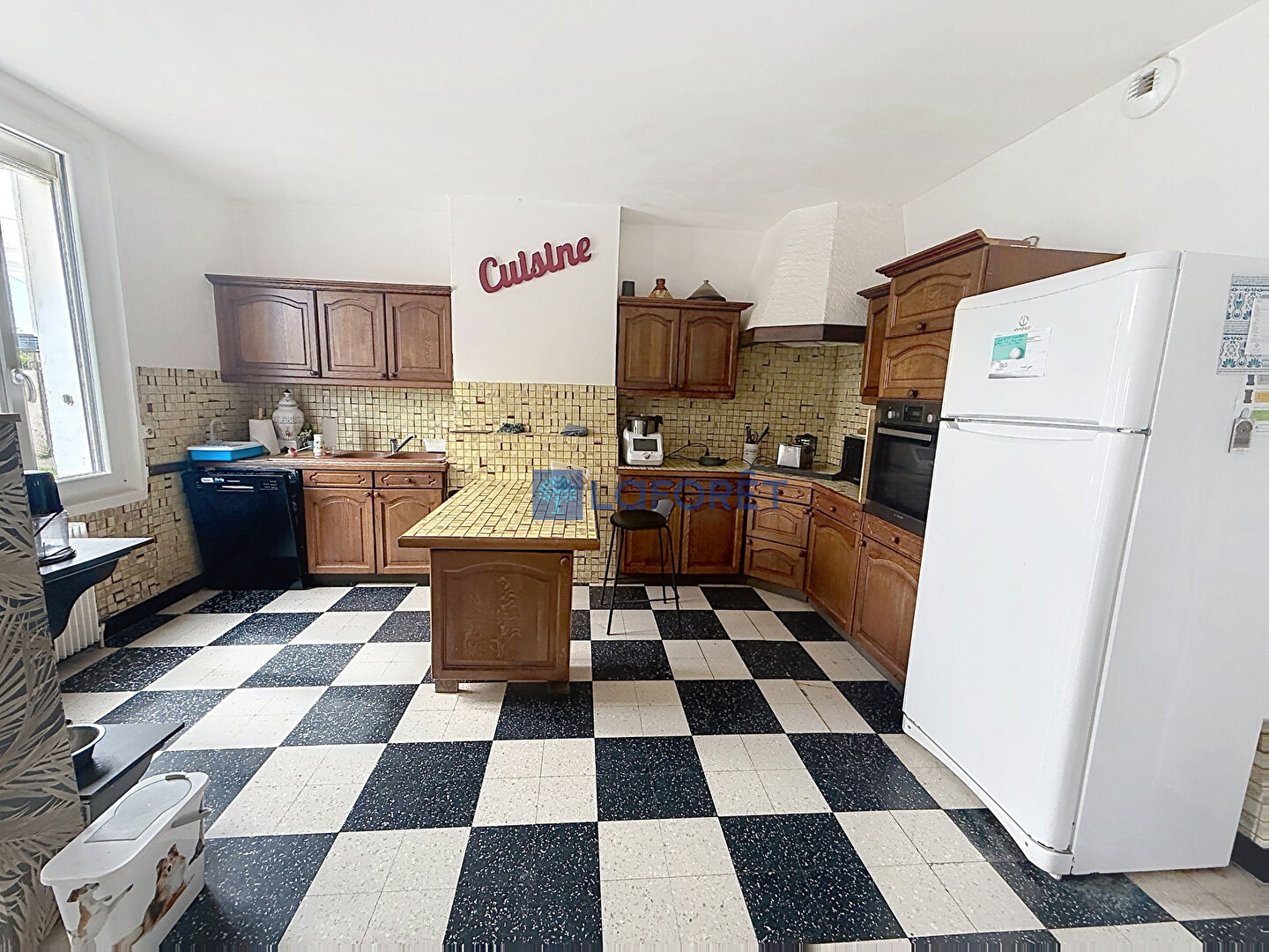 Au rez-de-chaussée, vous trouverez une cuisine équipée et meublée en bois, un WC indépendant, une buanderie, une salle de bains, ainsi qu'une salle à manger avec cheminée et un salon bénéficiant d'un accès à l'étage.