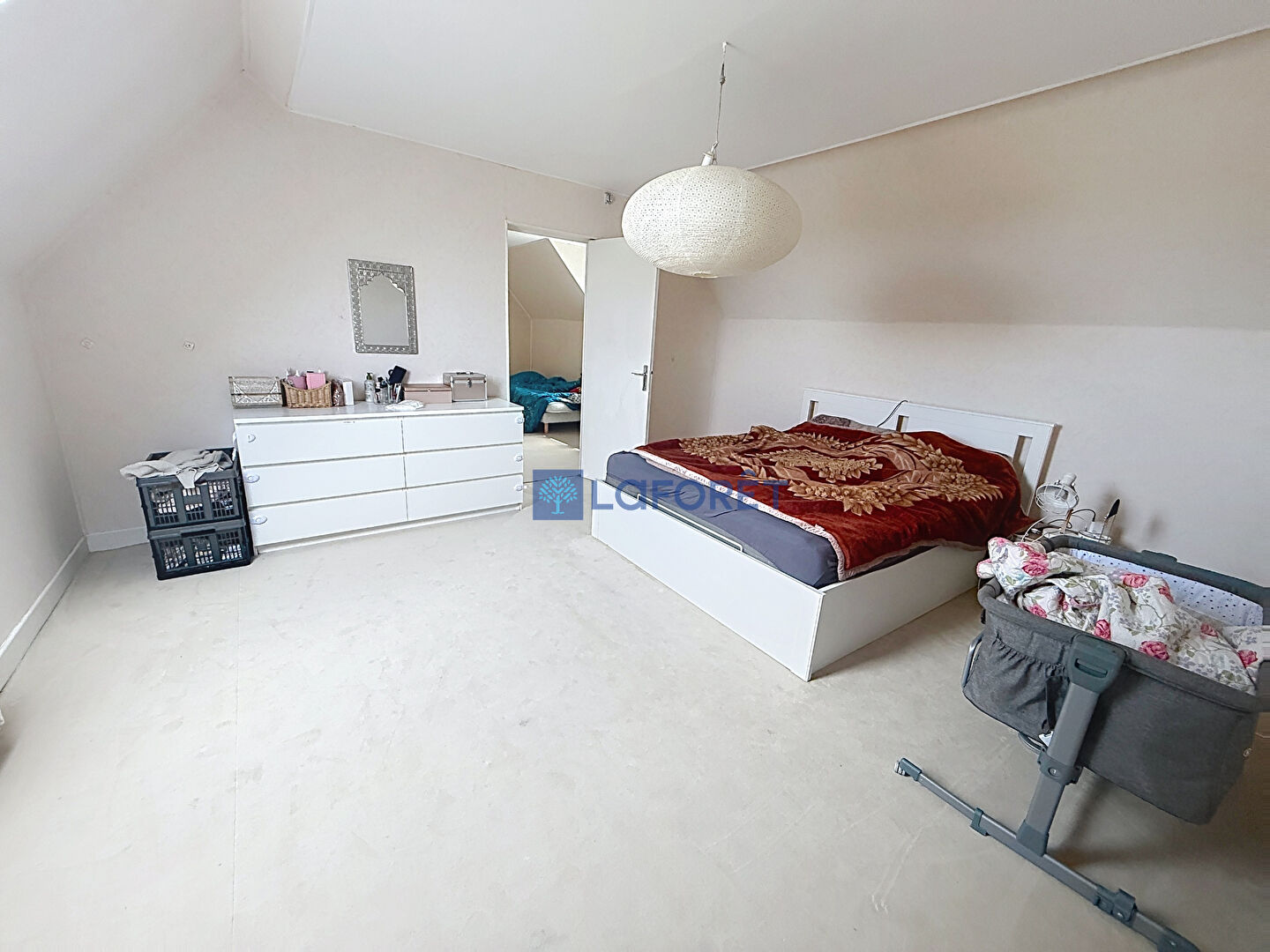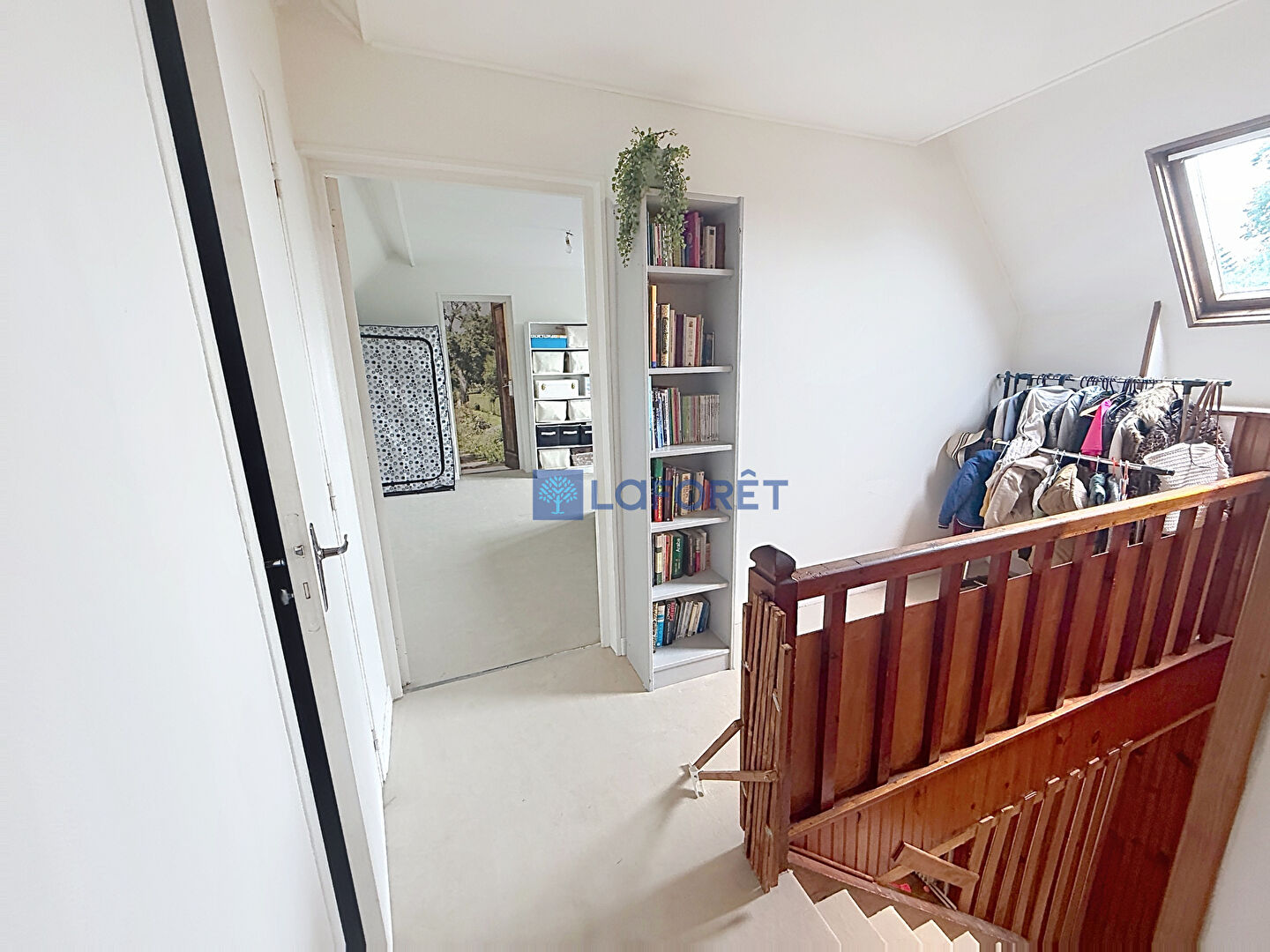 L'étage se compose d'un palier desservant trois chambres, dont une en enfilade, un WC indépendant et un grenier aménageable, laissant entrevoir de belles possibilités d'aménagement.