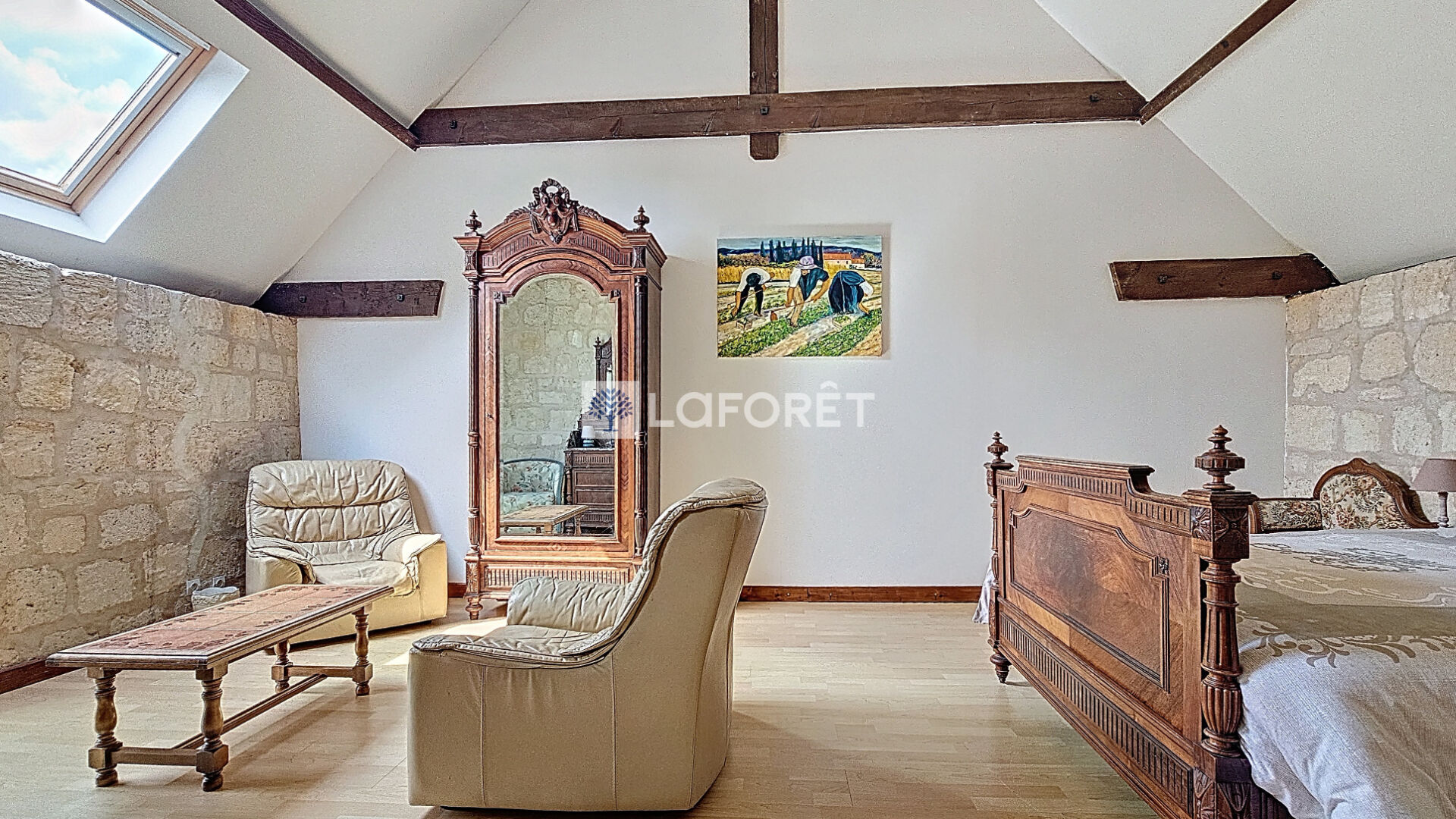 Une maison d'habitation avec des pierres apparentes et une charpente en bois, anciennement une abbaye